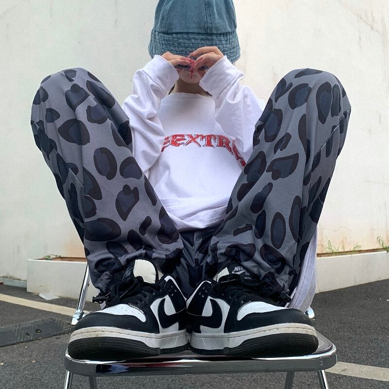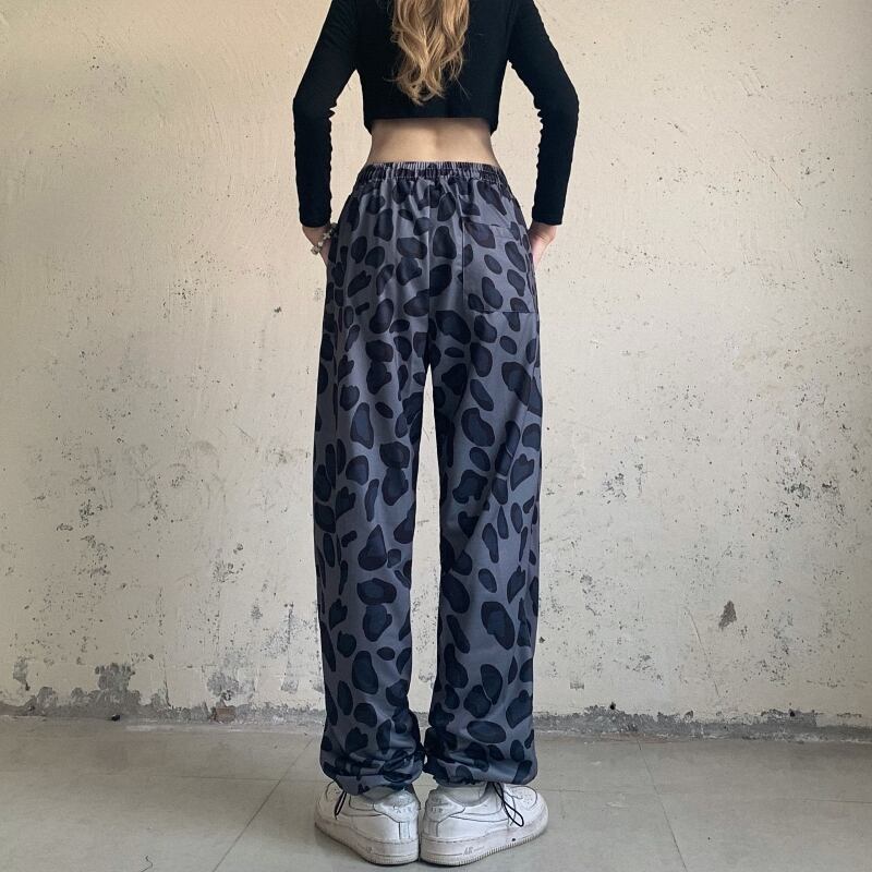 レギンス カジュアルパンツ 秋物韓国ファッションNEWスタンダードレオパードプリント柄ルーズ薄手ハイウェストウェストワイドレッグ レトロ オータム ワイドパンツ スタイル ウエスト Studios94863842093 | pLegLad Studios