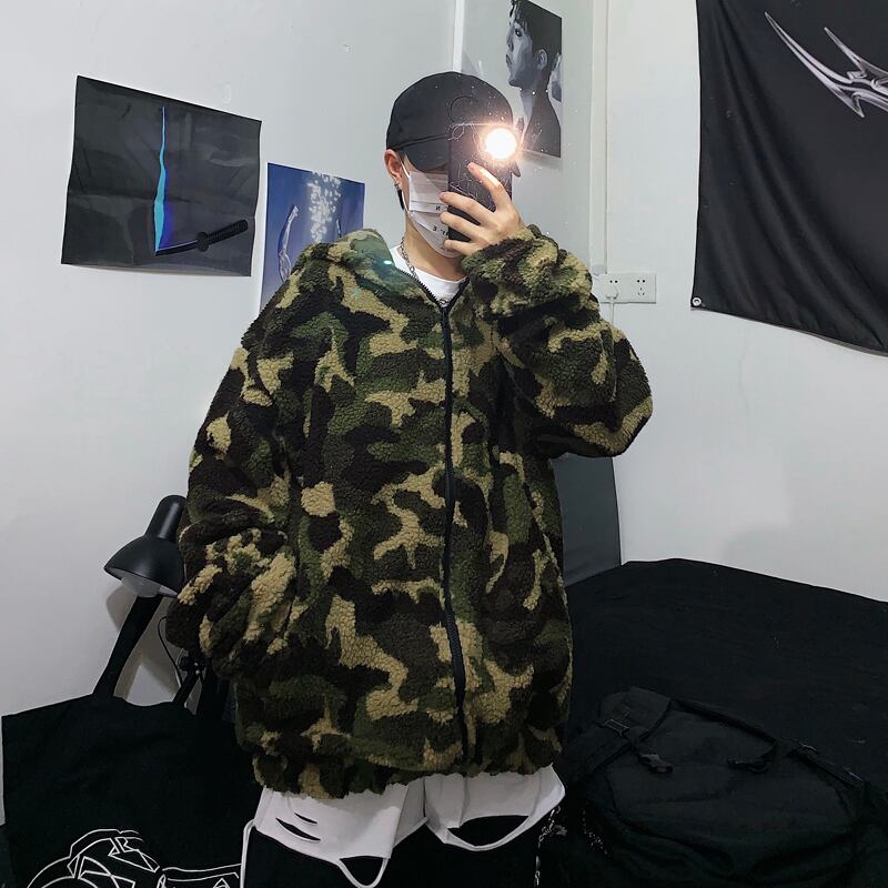 ウィンター韓国ファッションNEWスタイル迷彩柄ジッパーフードルーズ厚みコート メンズレディース コットン ストリート 原宿 冬物 Studios28229372150 | pLegLad Studios