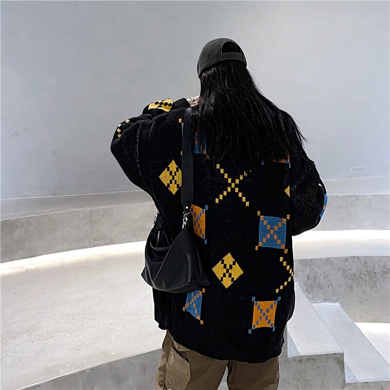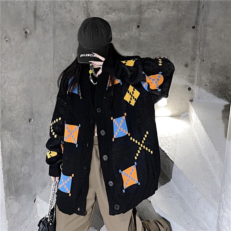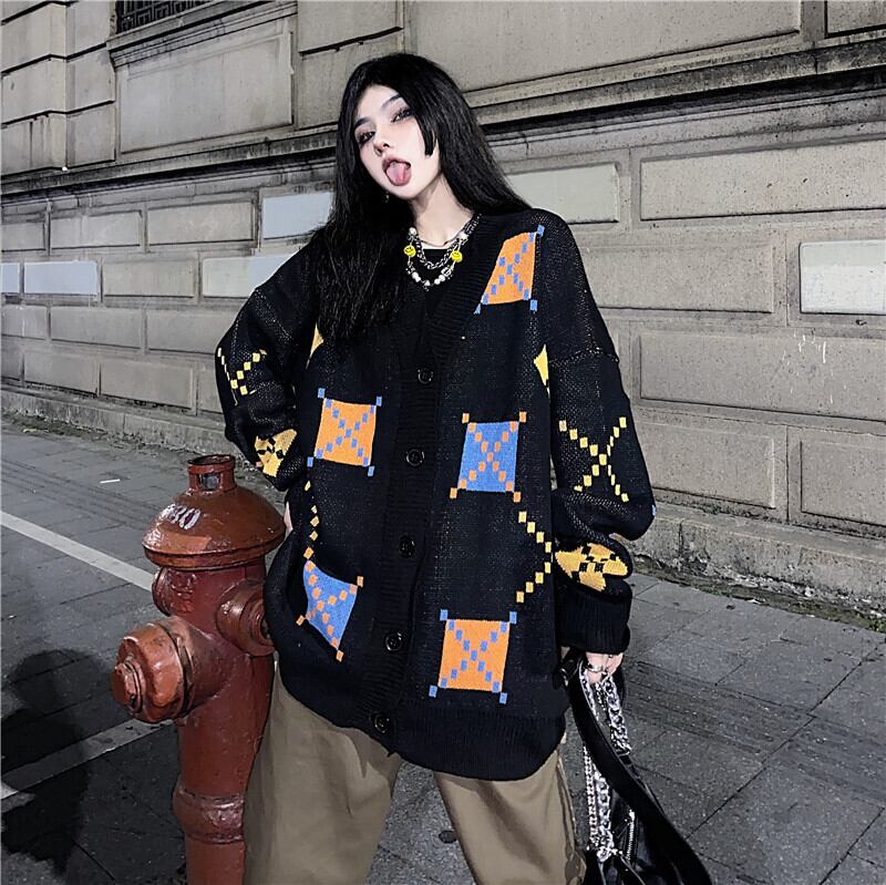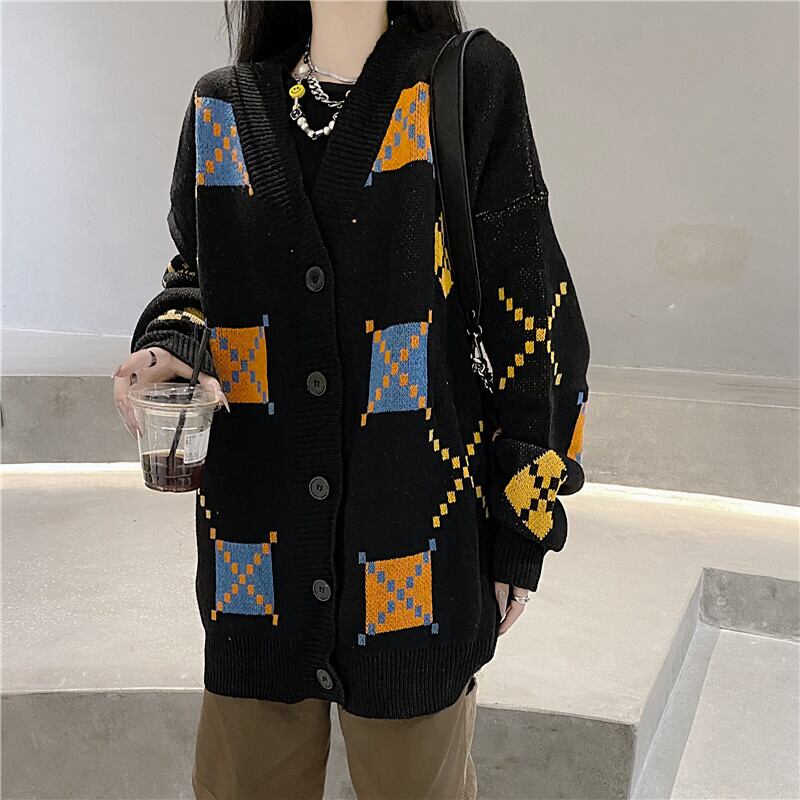 秋物ウィンター韓国ファッションNEWスタイルスタンダード格子柄ジャカードルーズカーディガンボタンセーター ジャケット レディース レトロ オータム 冬物 Studios61486393074 | pLegLad Studios