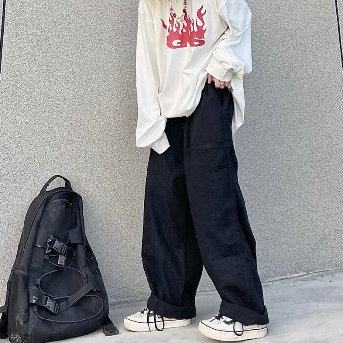カジュアルパンツ レディース韓国ファッションNEWスタンダードルーズハイウェストウェスト薄手ワイドレッグパンツ レトロ ストリート ワイドパンツ スタイル ウエスト Studios88118322090 | pLegLad Studios