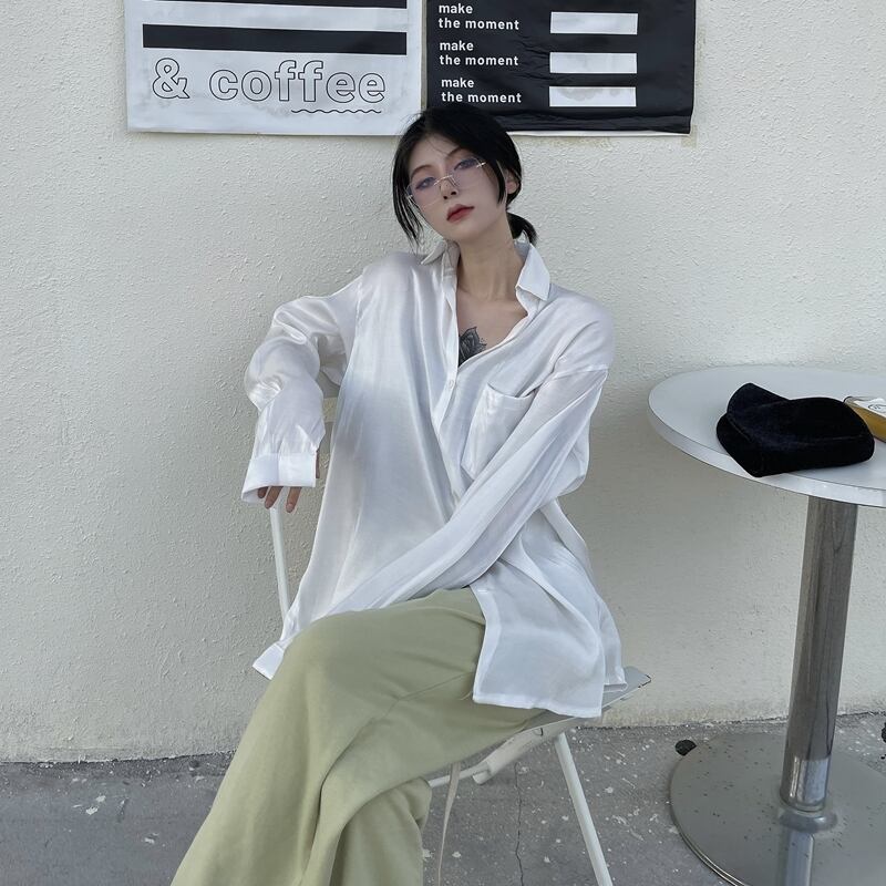 スプリング夏服韓国ファッションNEWスタイルスタンダード薄手トップス ルーズカジュアルシャツ レディース ロング レトロ 春物 夏物 長袖 Studios95253832222 | pLegLad Studios