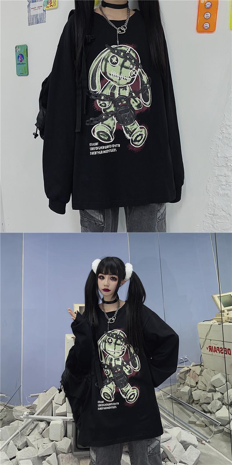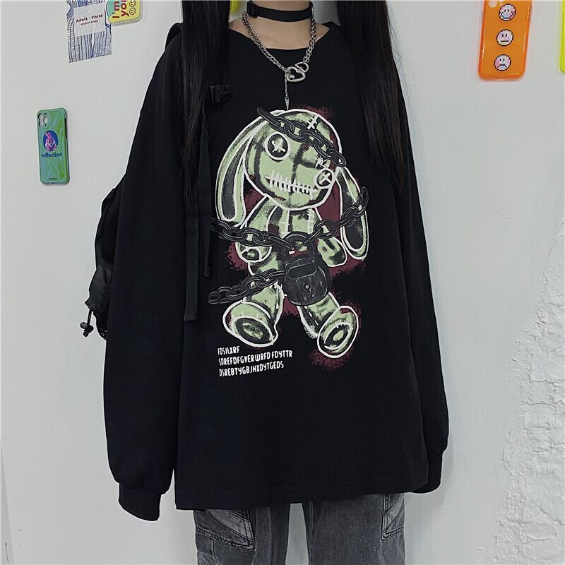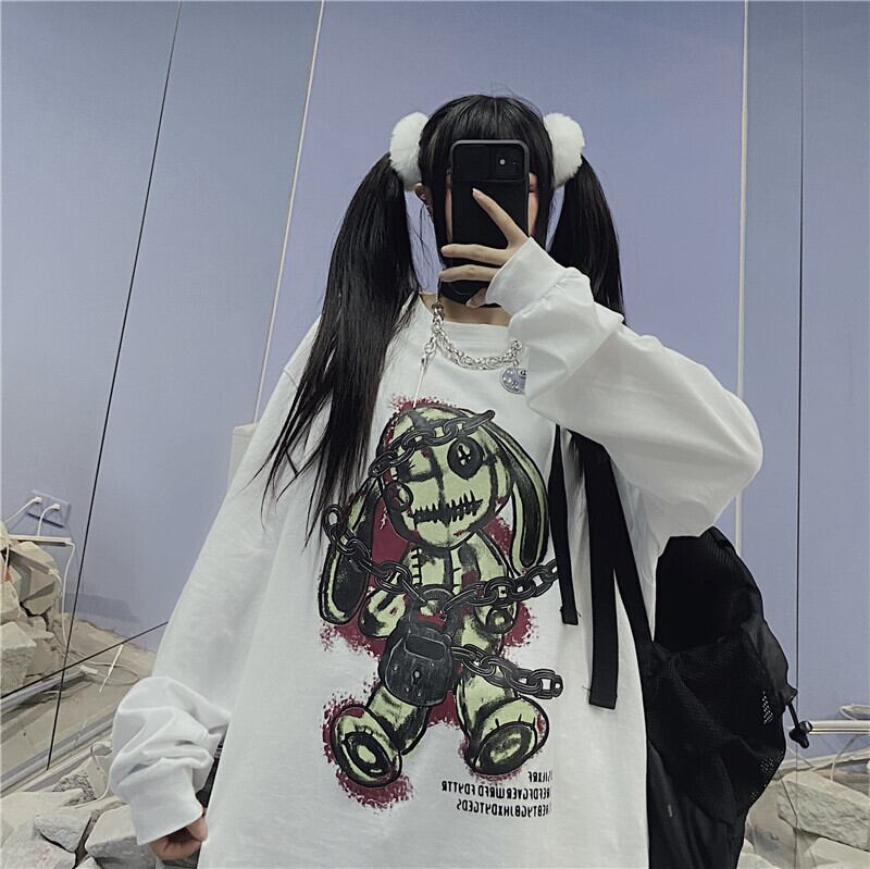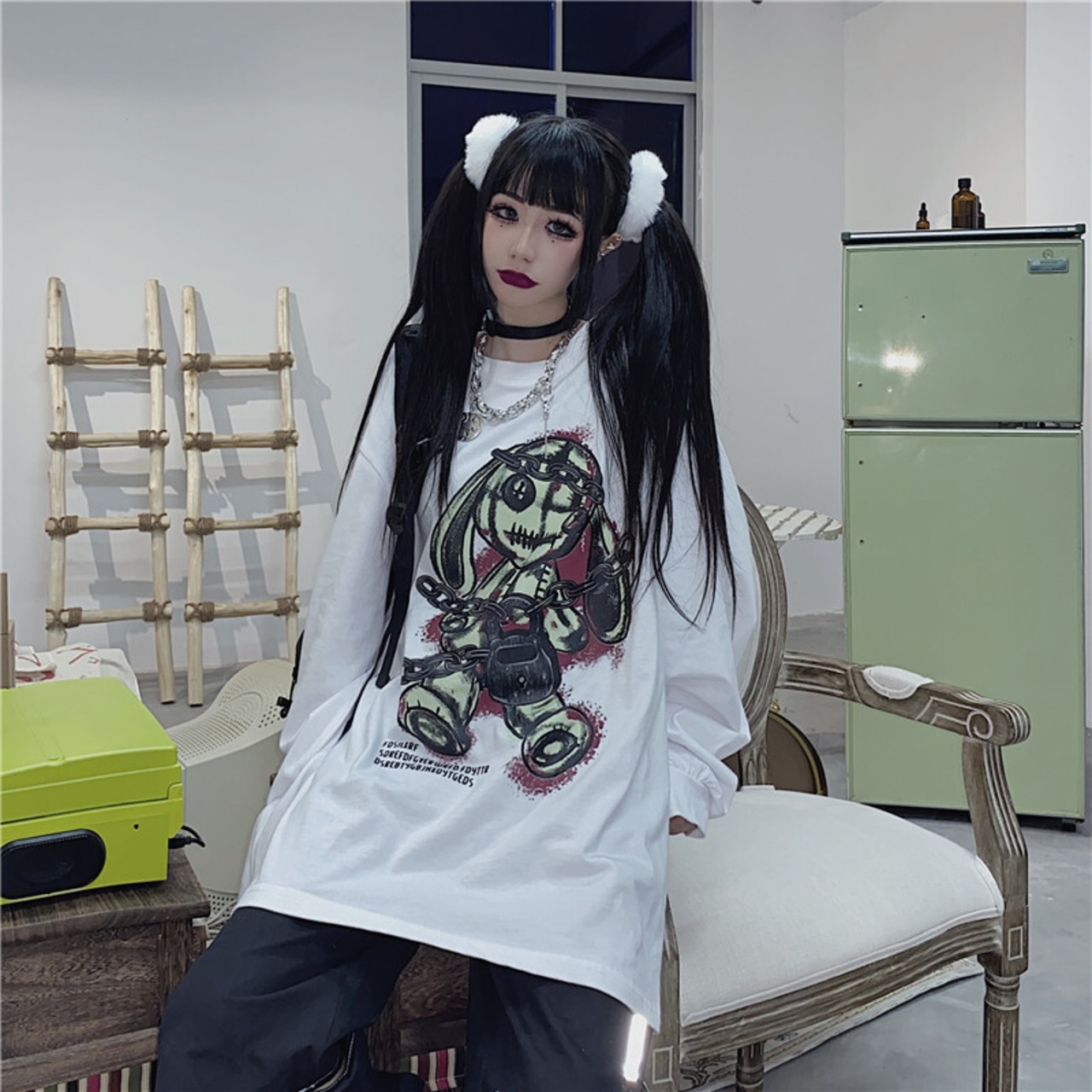 スプリング韓国ファッションNEWスタイルダークプリントルーズゆったりシャツ Tシャツメンズレディース ロング ストリート 原宿 春物 長袖 Studios44254649494 | pLegLad Studios