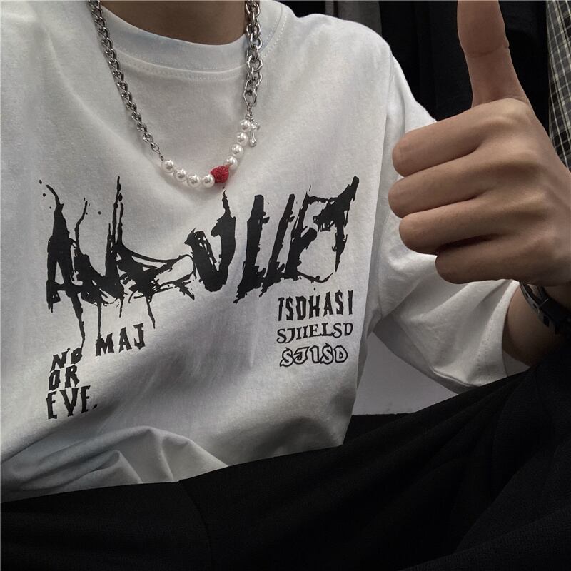 夏服韓国ファッションNEWスタイルスタンダードダークプリントルーズラウンドネックTシャツメンズレディース レトロ 原宿 夏物 Oネック Studios65995782224 | pLegLad Studios