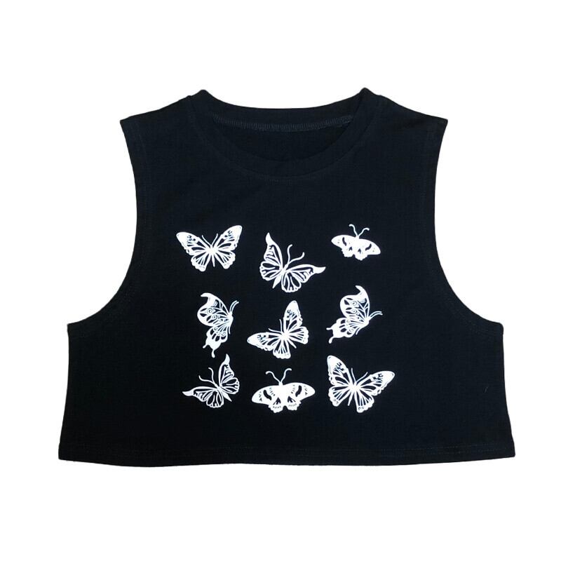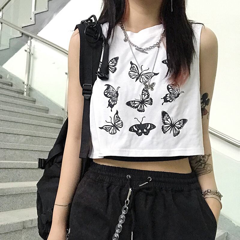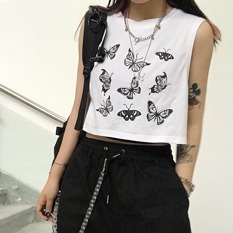 トップス 夏服韓国ファッションNEWスタイルスタンダードButterflyデザイン プリント柄ショートルーズノースリーブTシャツ レトロ 原宿 夏物 Studios79328708776 | pLegLad Studios