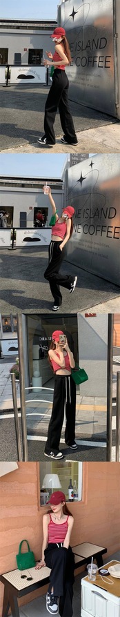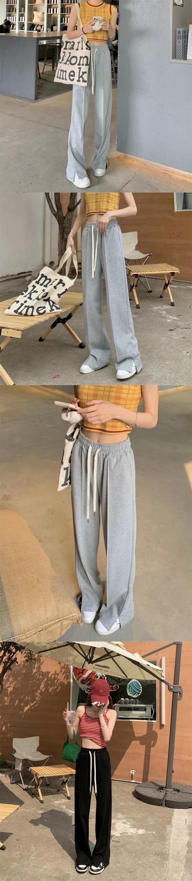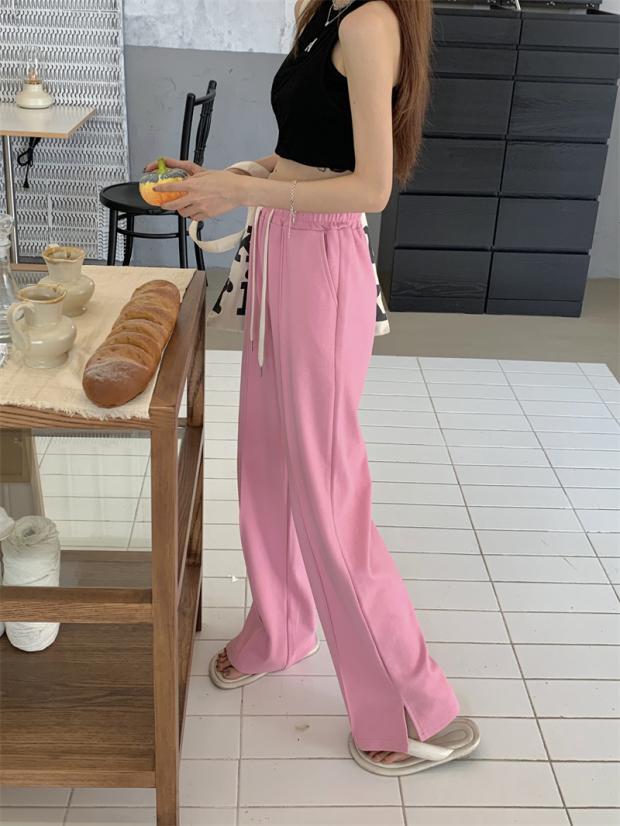 パンツ 夏服韓国ファッションNEWスタンダードハイウェストウェストスリムカジュアルルーズスリット レトロ 夏物 スタイル ウエスト コーデ モノクロ Studio18305903526 | pLegLad Studios