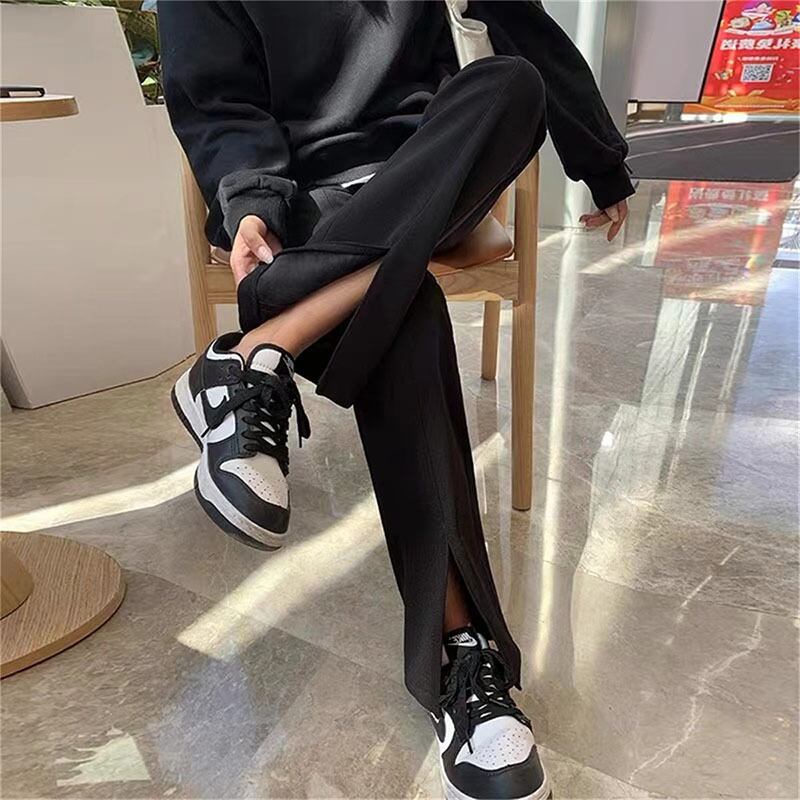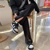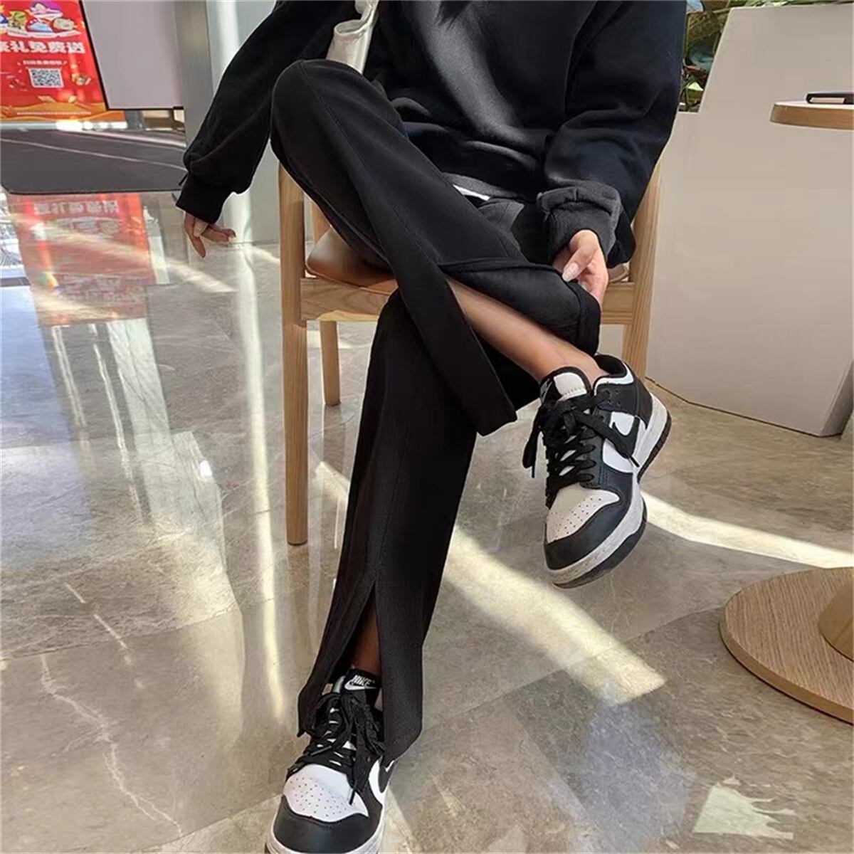 薄手スリットパンツ スプリング韓国ファッションNEWワイドレッグハイウェストウェストカジュアル 春物 ワイドパンツ スタイル ウエスト コーデ モノクロ Studio88279421448 | pLegLad Studios