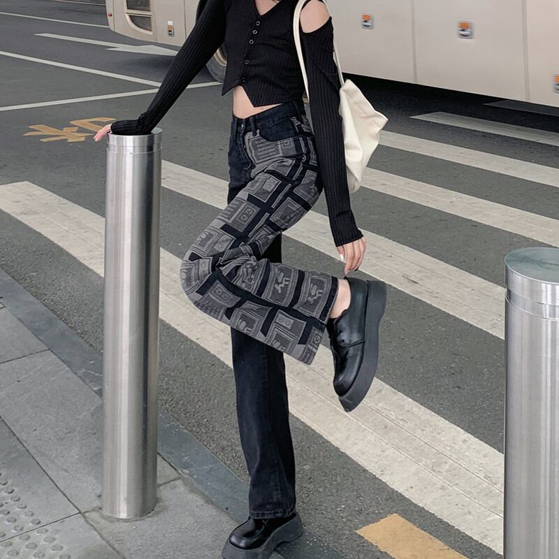 ダークプリント柄ジーンズ 夏服韓国ファッションNEWワイドレッグパンツ ハイウェストウェスト 夏物 ワイドパンツ ステッチ スタイル ウエスト コーデ モノクロ Studio48338664399 | pLegLad Studios