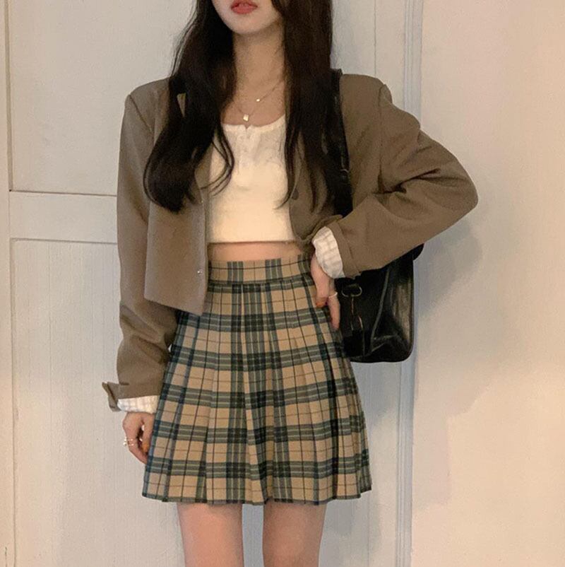 スカート レディース夏服韓国ファッションNEW格子柄ハイウェストウェストショートスリム 夏物 スタイル ウエスト コーデ モノクロ Studio4378034055 | pLegLad Studios