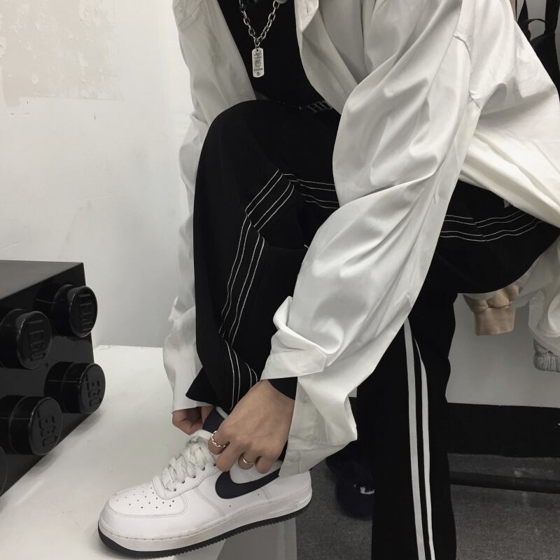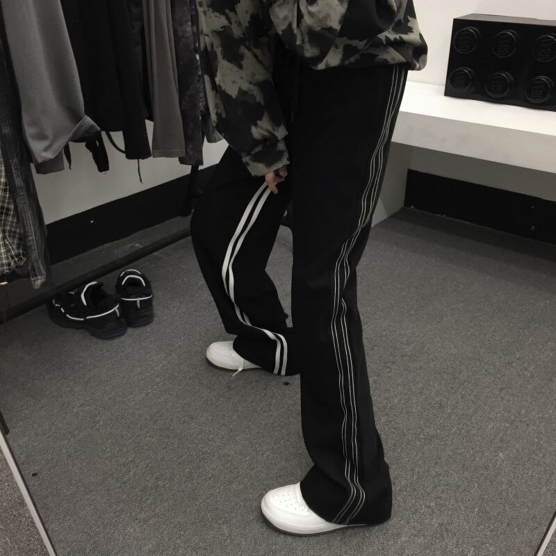 パンツ スプリング韓国ファッションNEWブラックストライプハイウェストウェストスリム 春物 スタイル ウエスト コーデ モノクロ Studio66146684800 | pLegLad Studios