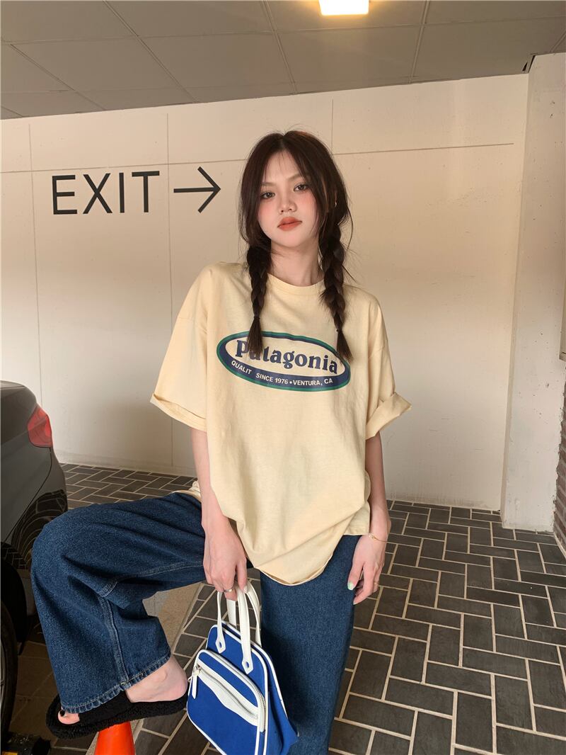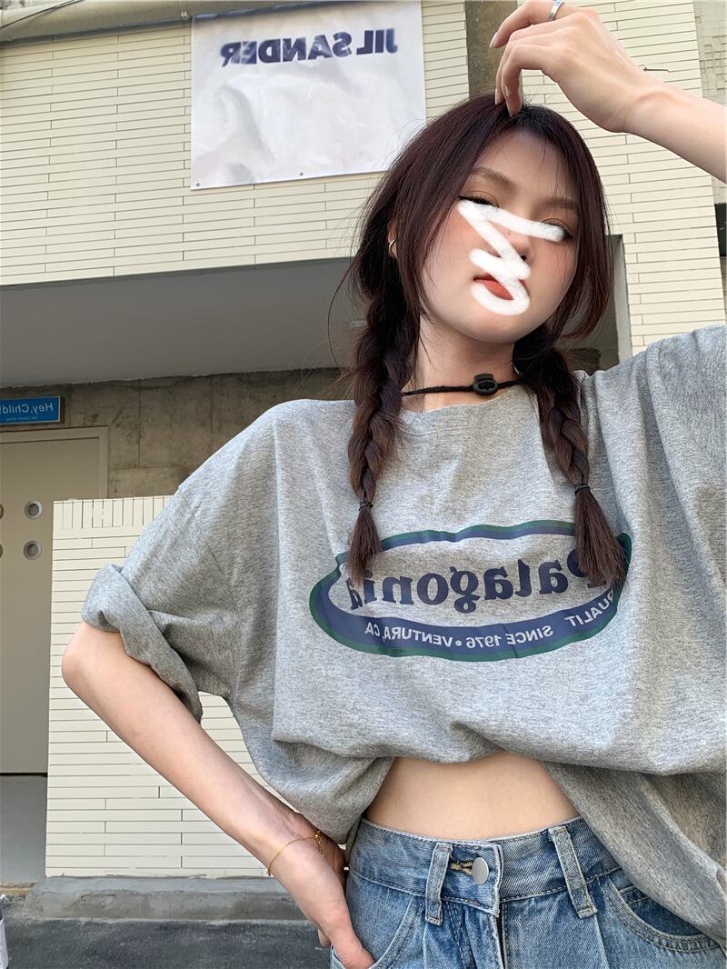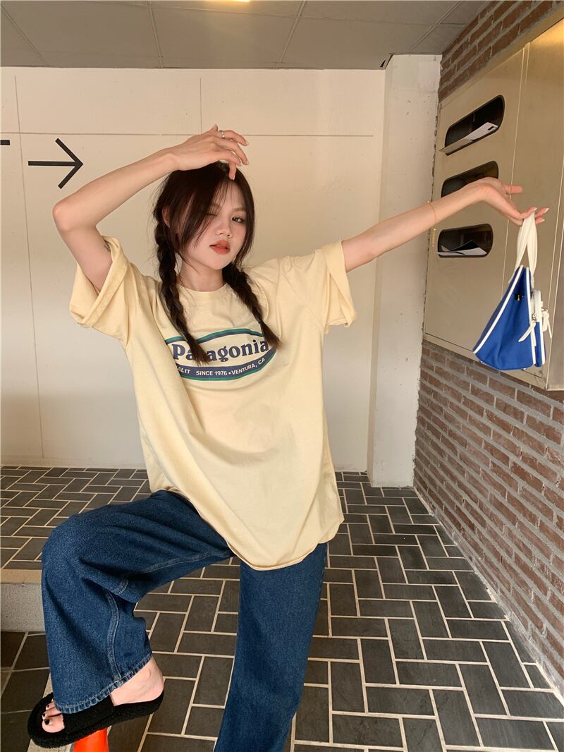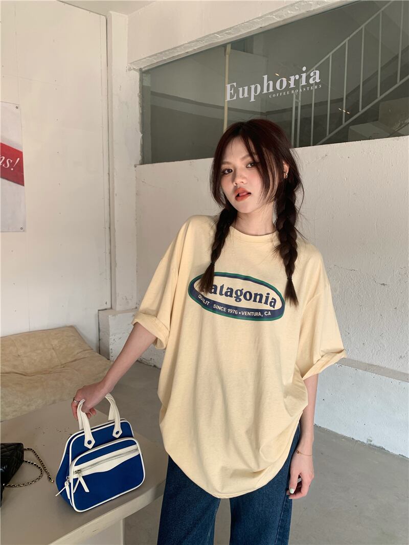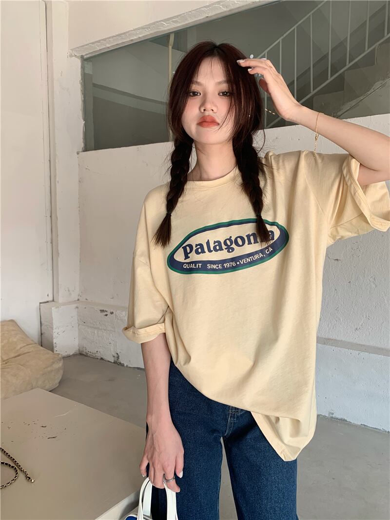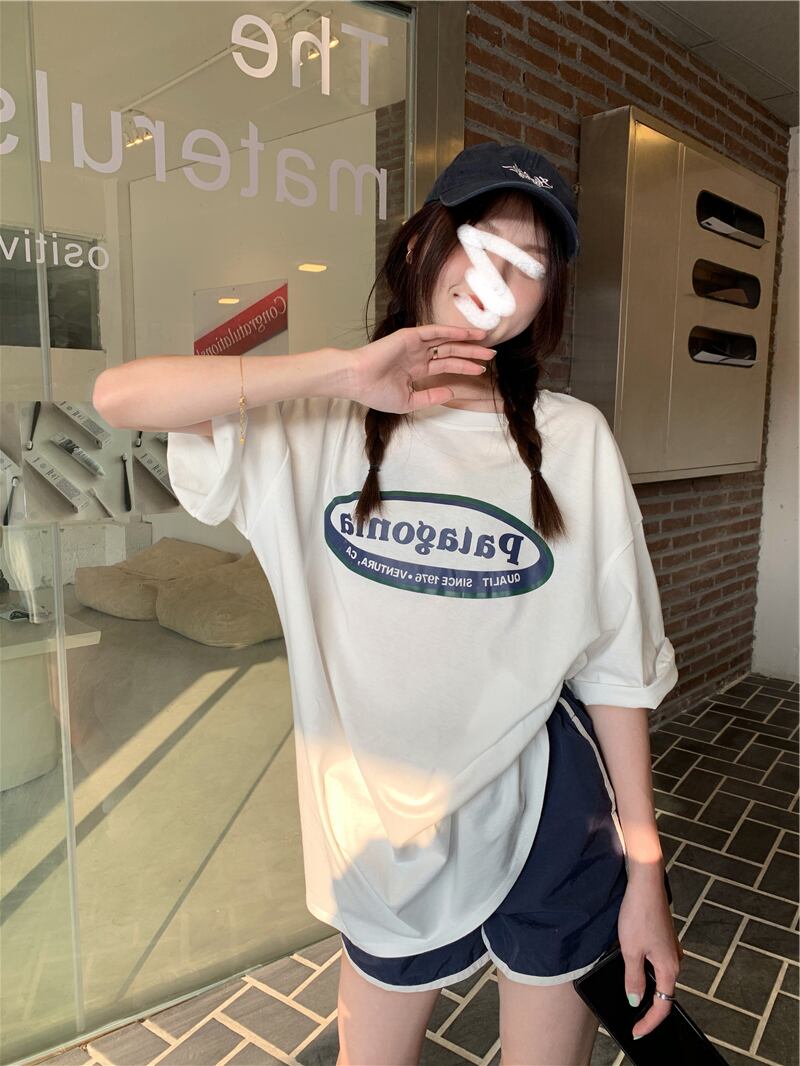 プリントルーズTシャツシャツ 夏服韓国ファッションNEWラウンドネックゆったりトップス 夏物 Oネック スタイル コーデ モノクロ Studio75608547777 | pLegLad Studios