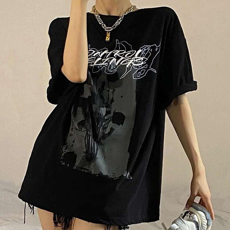 薄手Tシャツシャツ 夏服韓国ファッションNEWダークプリント柄ルーズゆったりトップス 夏物 スタイル コーデ モノクロ Studio11868833439
