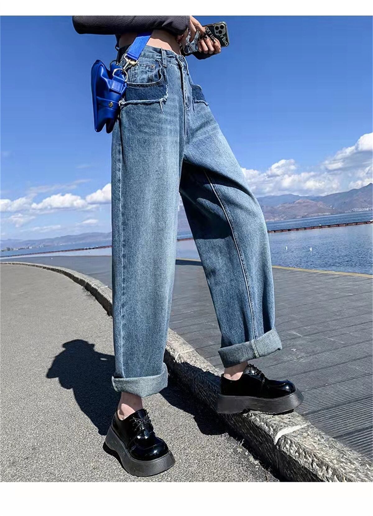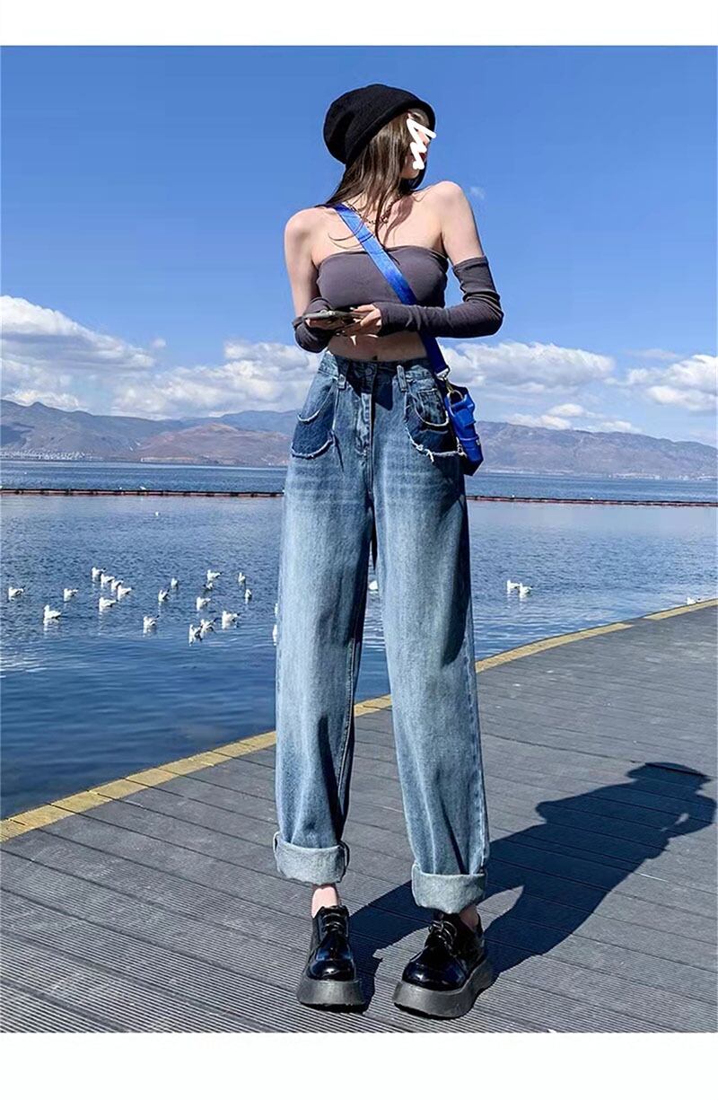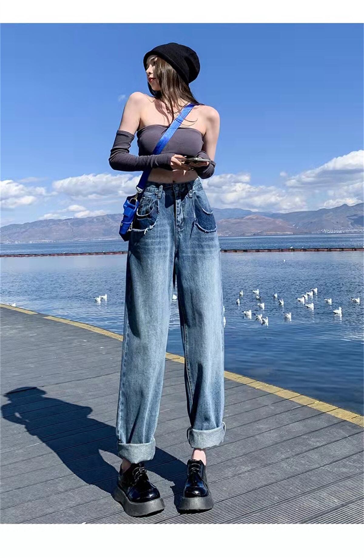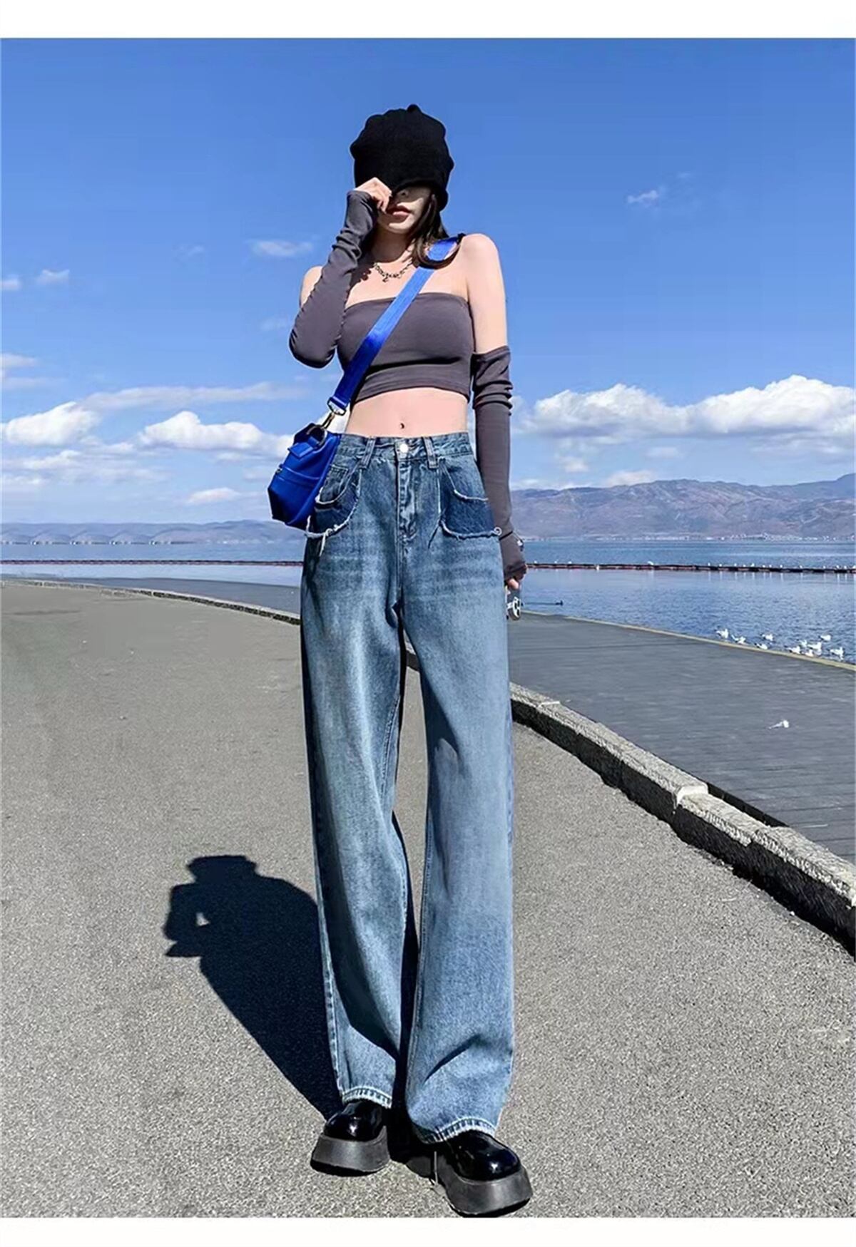 ハイウェストウェストジーンズ レディーススプリング韓国ファッションNEWスタンダードブルーワイドレッグパンツ レトロ 春物 ワイドパンツ スタイル ウエスト コーデ モノクロ Studio97496301426 | pLegLad Studios