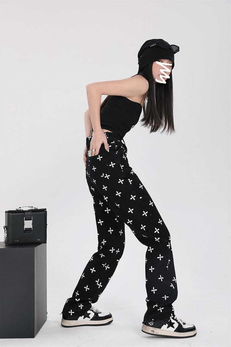 クロスジーンズ 夏服韓国ファッションNEWハイウェストウェストワイドレッグパンツ 夏物 ワイドパンツ スタイル ウエスト コーデ モノクロ Studio19671886274 | pLegLad Studios