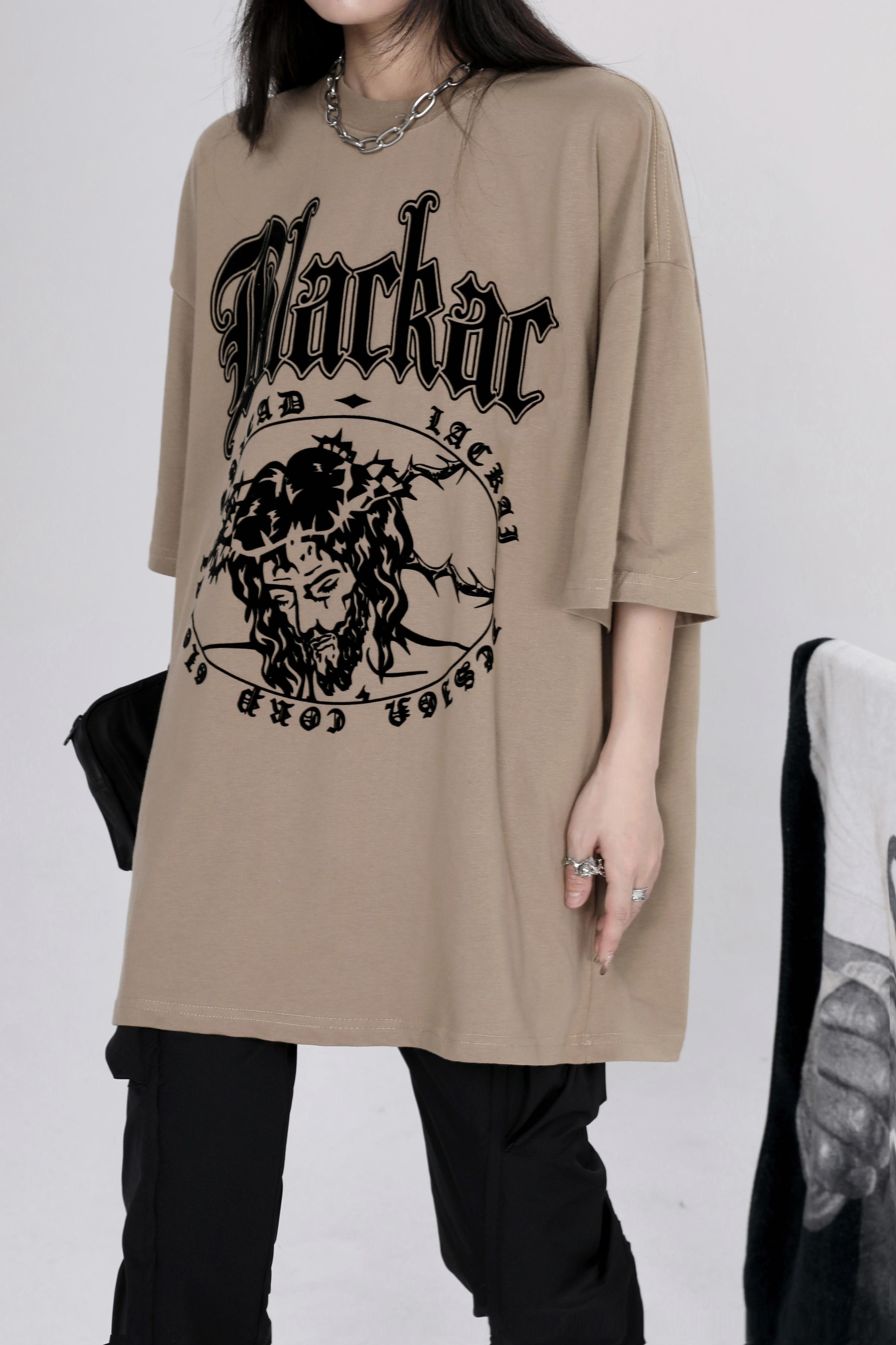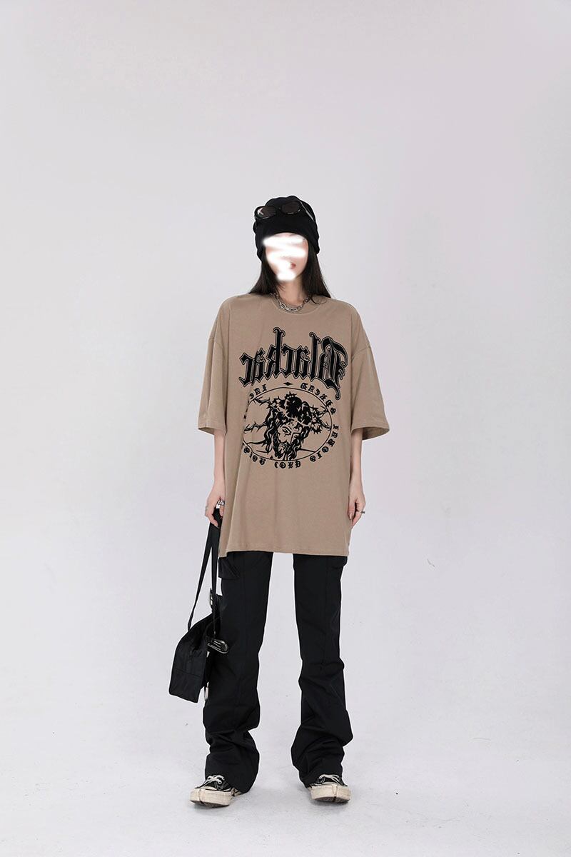 プリントルーズTシャツシャツ 夏服韓国ファッションNEWスタンダードカジュアルゆったり レトロ 夏物 スタイル コーデ モノクロ Studio18299031847 | pLegLad Studios