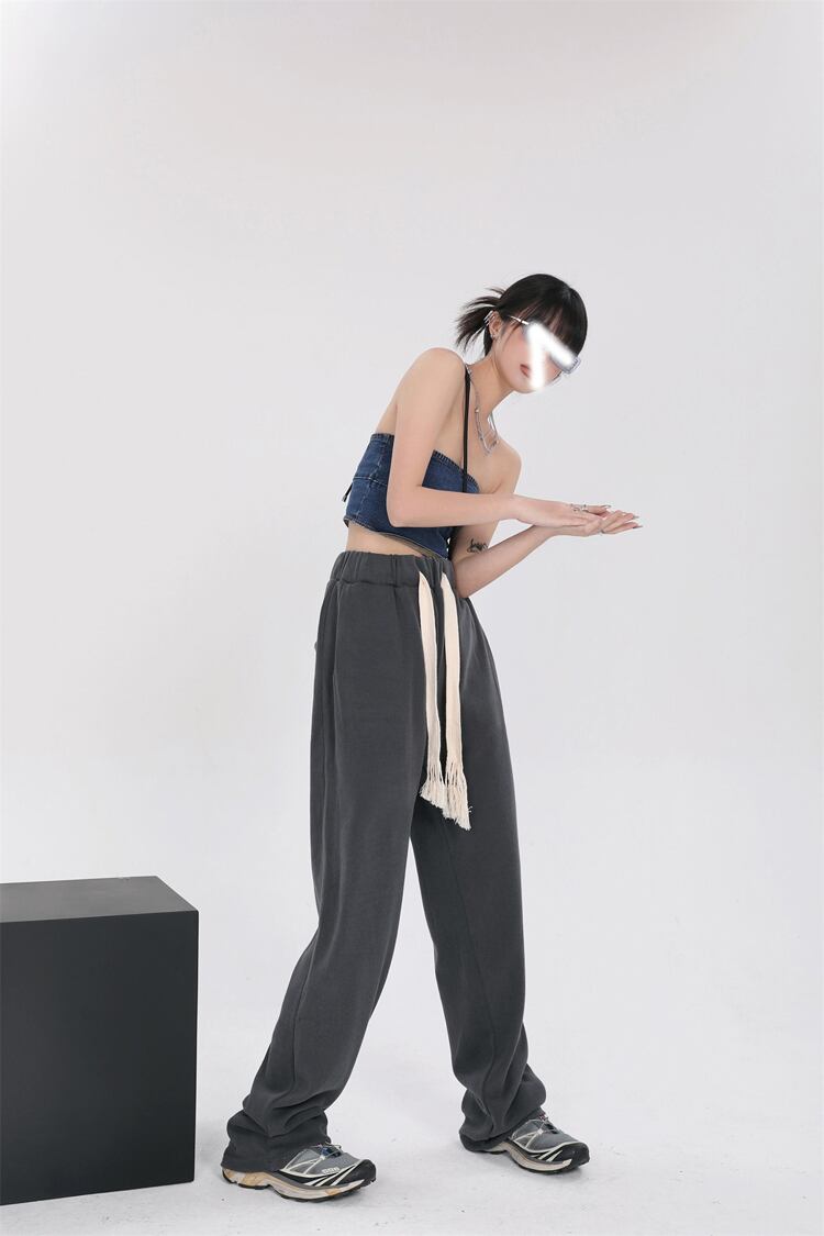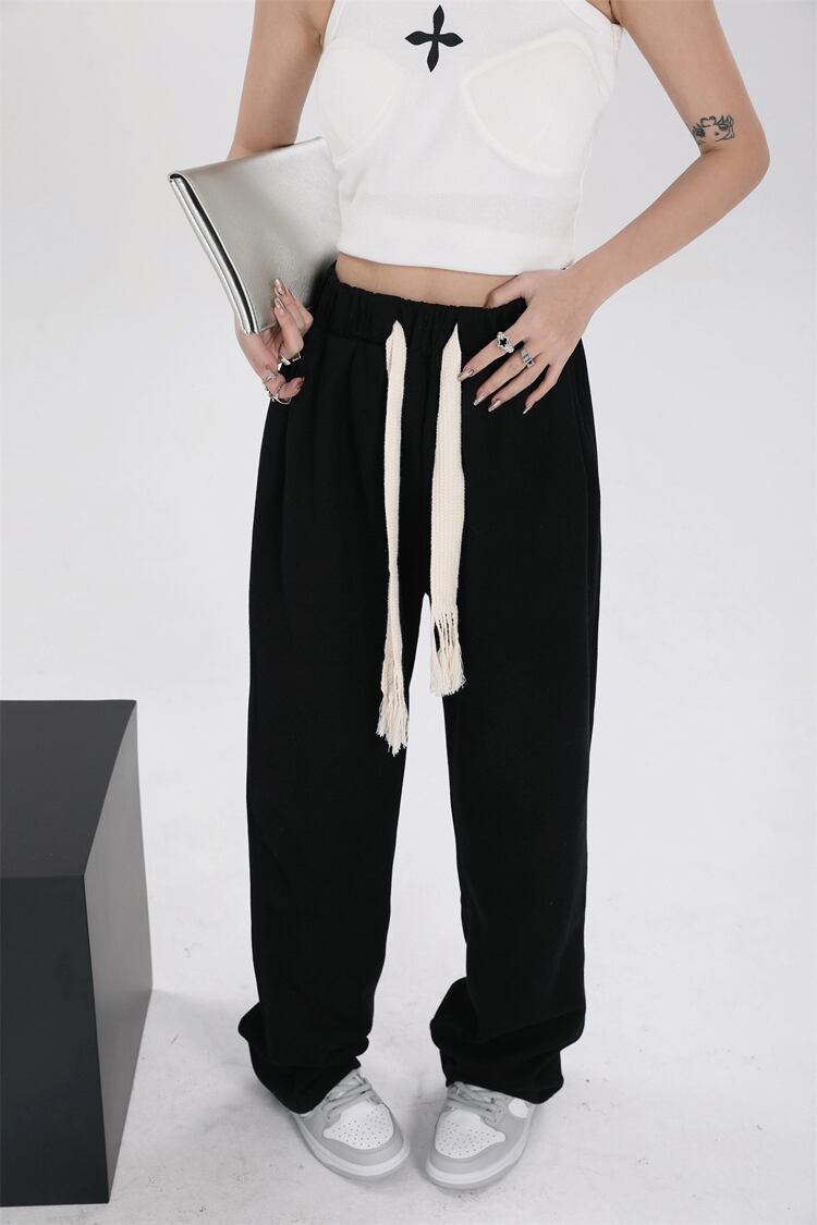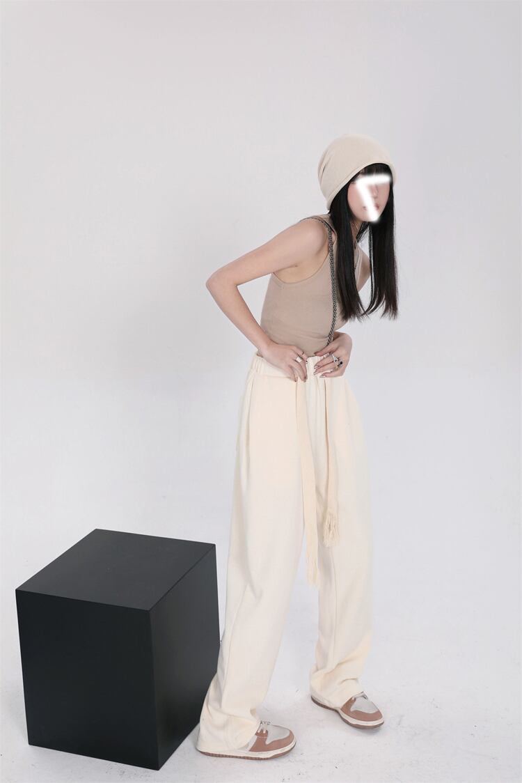 カジュアルパンツ 夏服韓国ファッションNEWストラップ ルーズワイドレッグハイウェストウェスト 夏物 ワイドパンツ スタイル ウエスト コーデ モノクロ Studio97225162903 | pLegLad Studios
