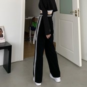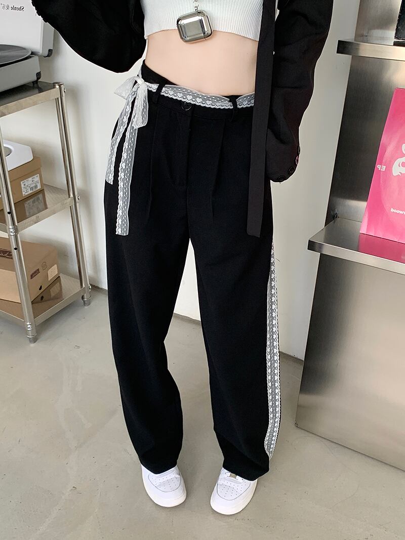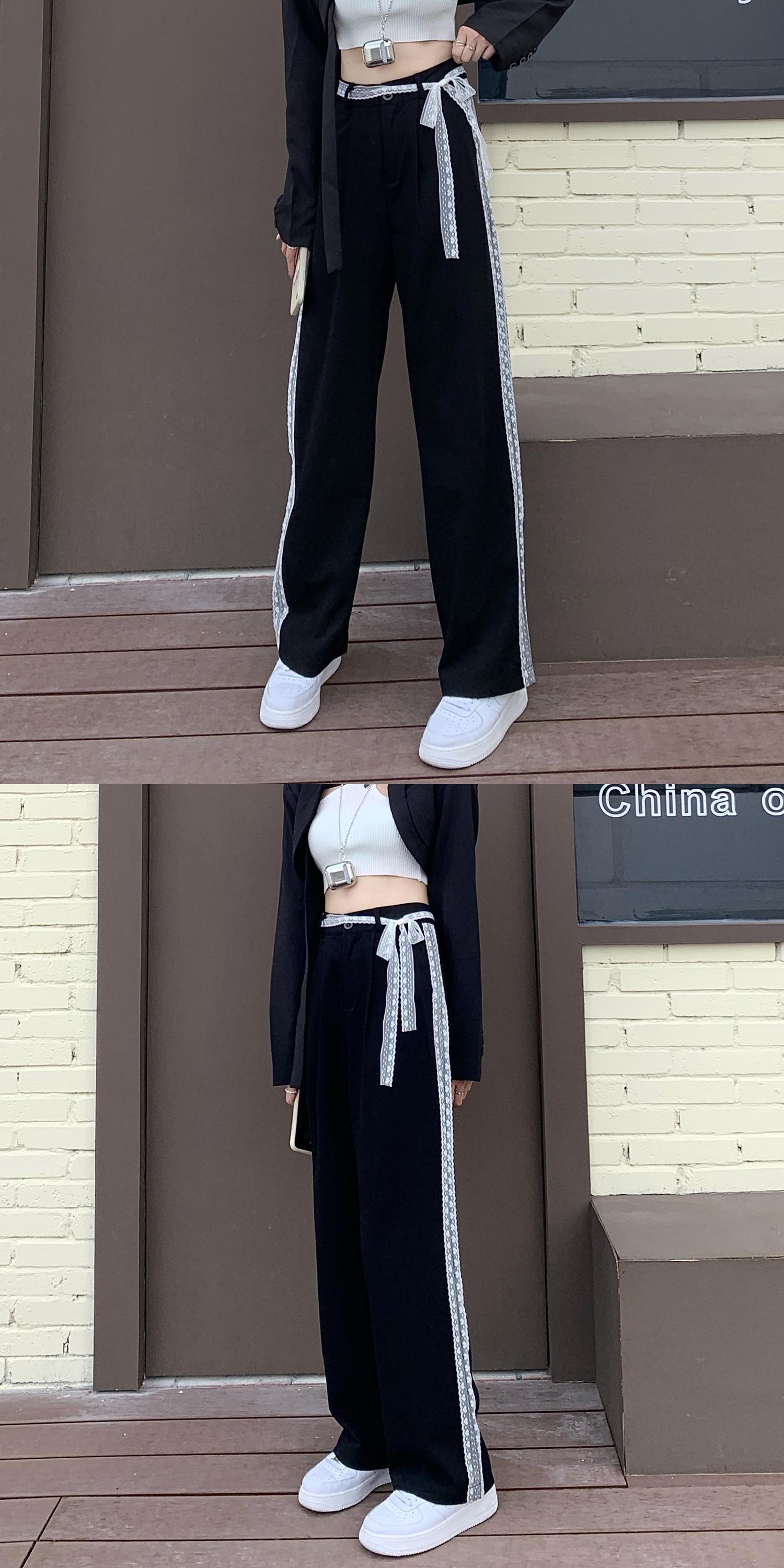 カジュアル夏服韓国ファッションNEWハイウェストウェスト薄手ワイドレッグパンツ ルーズ 夏物 ワイドパンツ スタイル ウエスト コーデ モノクロ Studio88257239798 | pLegLad Studios