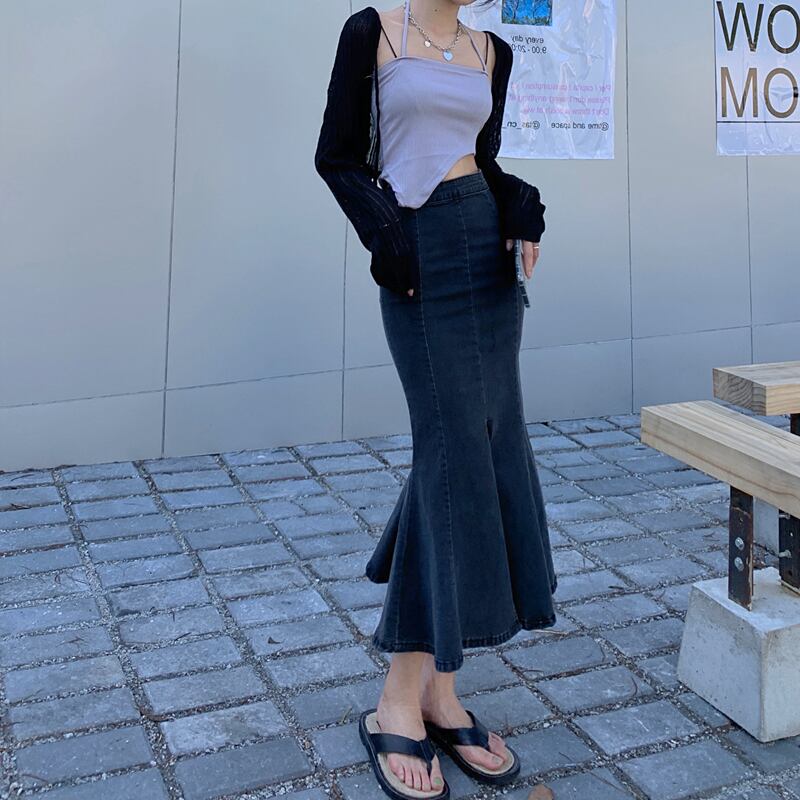 スカート 夏服韓国ファッションNEWストレッチAラインハイウェストウェストミディ エラスティック 伸縮 夏物 スタイル ウエスト コーデ モノクロ Studio2543331439 | pLegLad Studios