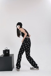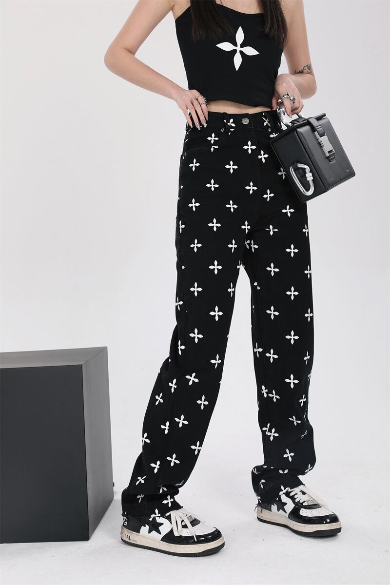 ダーククロスジーンズ 夏服韓国ファッションNEWブラックワイドレッグパンツ ウェスト 夏物 ワイドパンツ スタイル ウエスト コーデ モノクロ Studio33448825926 | pLegLad Studios