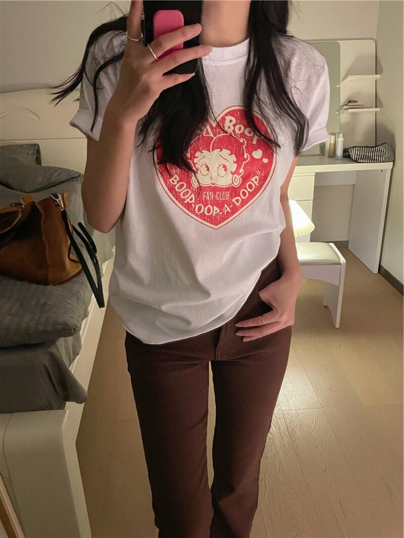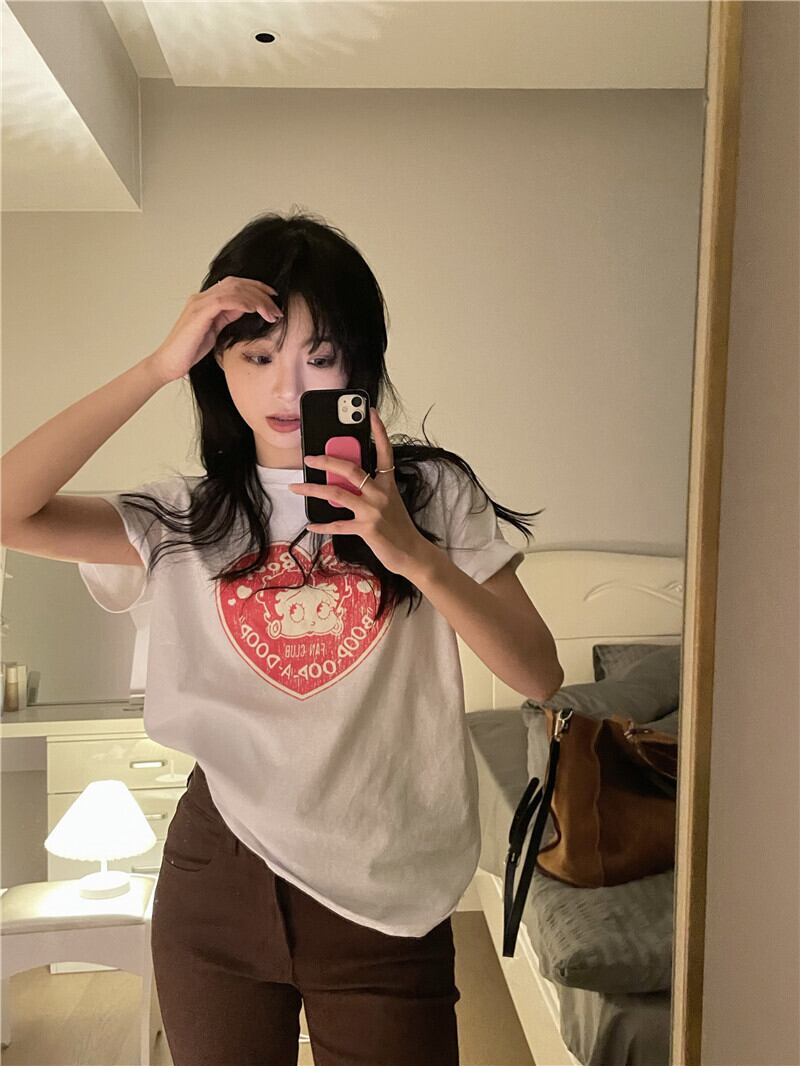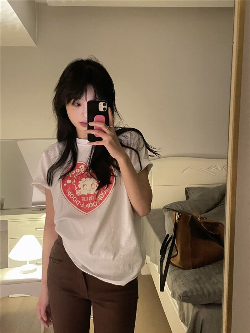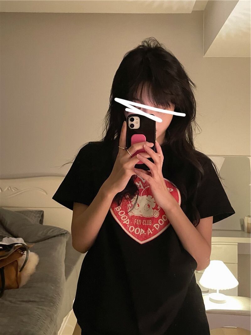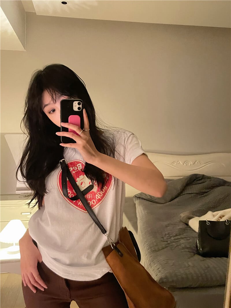 ラウンドネックプリント柄Tシャツシャツ 夏服韓国ファッションNEWホワイトカジュアルゆったり 夏物 Oネック スタイル コーデ モノクロ Studio89344427673 | pLegLad Studios