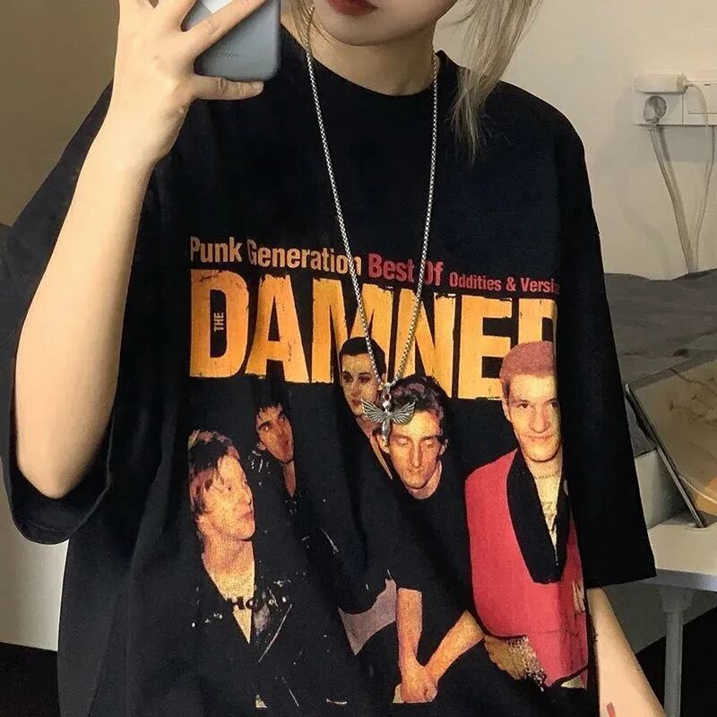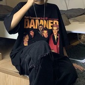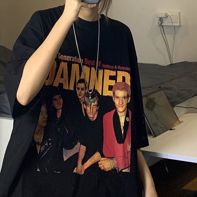 スタンダードプリント柄Tシャツ夏服韓国ファッションNEWルーズラウンドネックトップス レトロ ストリート 夏物 Oネック スタイル コーデ モノクロ Studio62342482028 | pLegLad Studios
