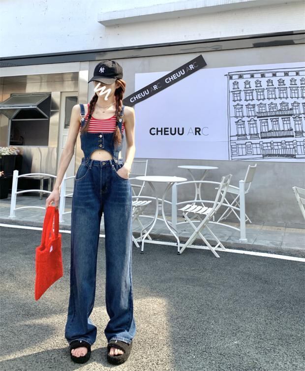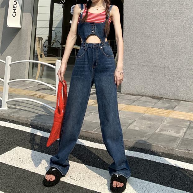 パンツ夏服韓国ファッションNEWハイウェストウェストワイドレッグジャンプスーツ オールインワン 夏物 ワイドパンツ スタイル ウエスト コーデ モノクロ Studio64177015745 | pLegLad Studios