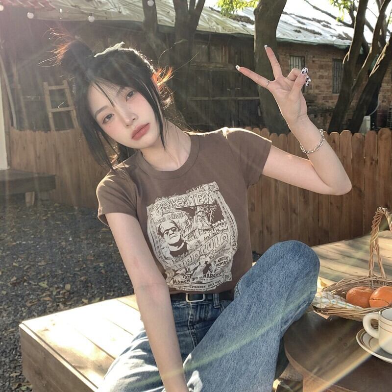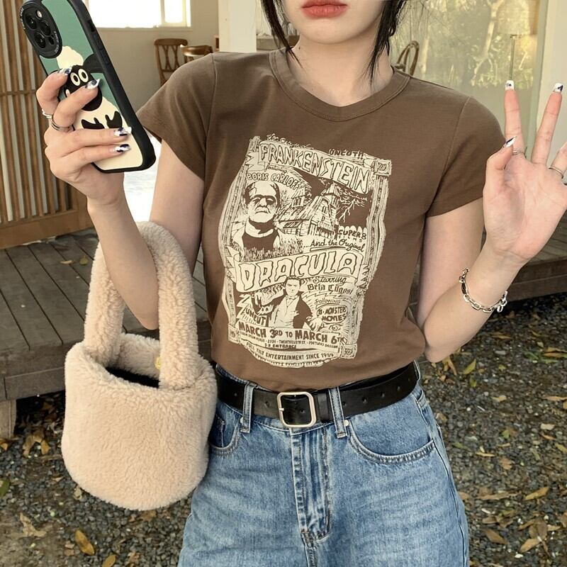 スタンダードTシャツ夏服カラーショートスリムトップス レトロ 大人ガーリー スウィート キュート カジュアル 夏物 コーデ モノクロ Studio61122323780 | pLegLad Studios
