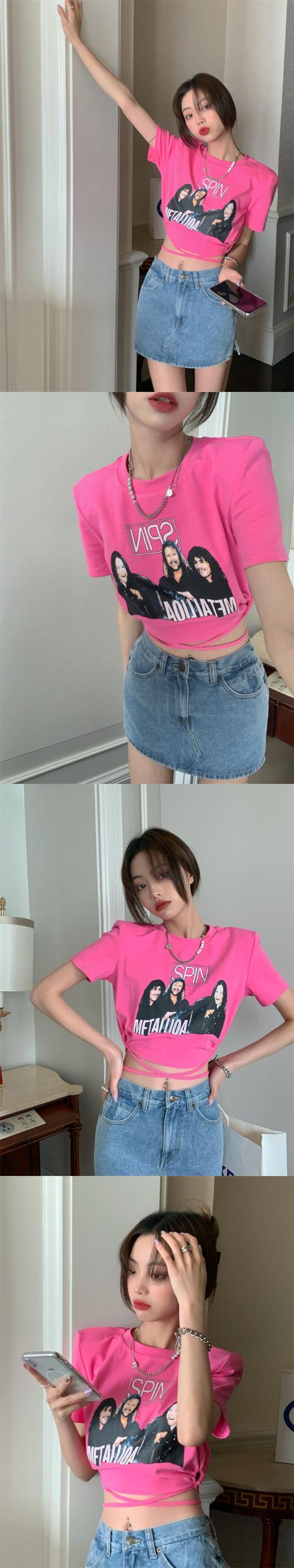 Tシャツ夏服ワンピースショートスリムラウンドネックトップス NEW ピンク 大人ガーリー スウィート キュート カジュアル 夏物 Oネック コーデ モノクロ Studio99207656437 | pLegLad Studios