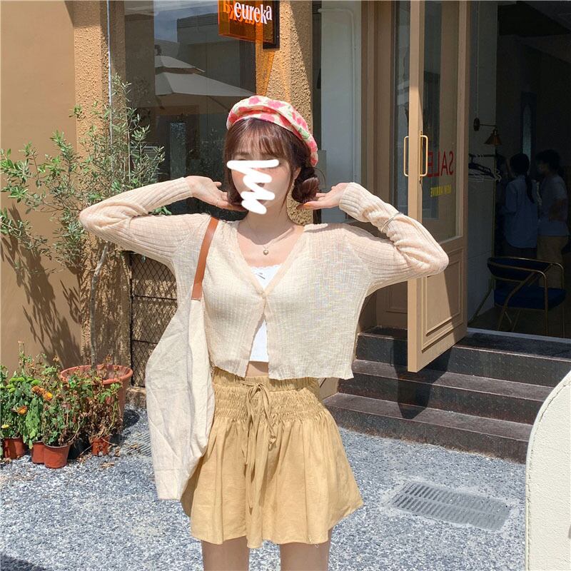 スプリング秋物薄手Vネックニットカーディガンショートシャツ ショールスカート ジャケット 春物 オータム シルク コーデ モノクロ Studio98249559579 | pLegLad Studios