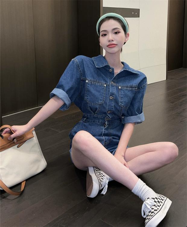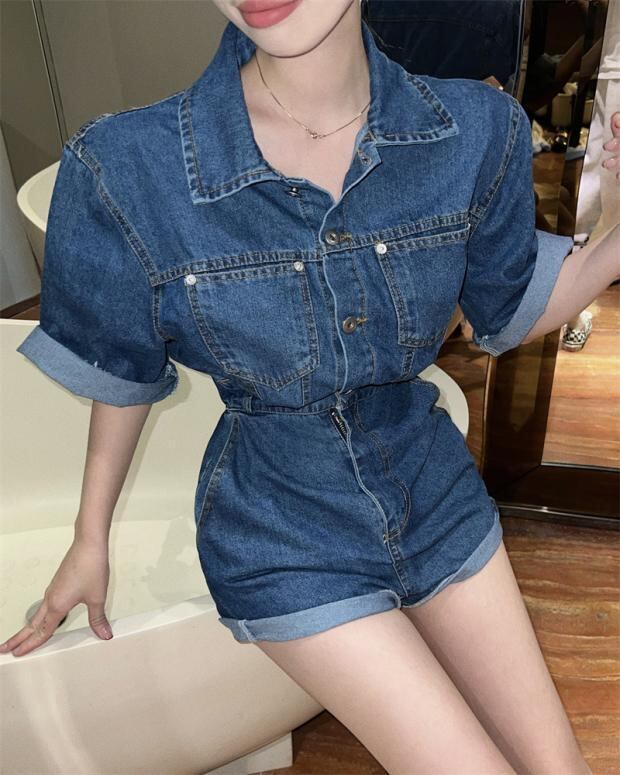 スタイルジーンズ ジャンプスーツ オールインワン 夏服スタンダードルーズハイウェストパンツ Aラインショーツ レトロ 夏物 ウエスト コーデ モノクロ Studio78621219651 | pLegLad Studios