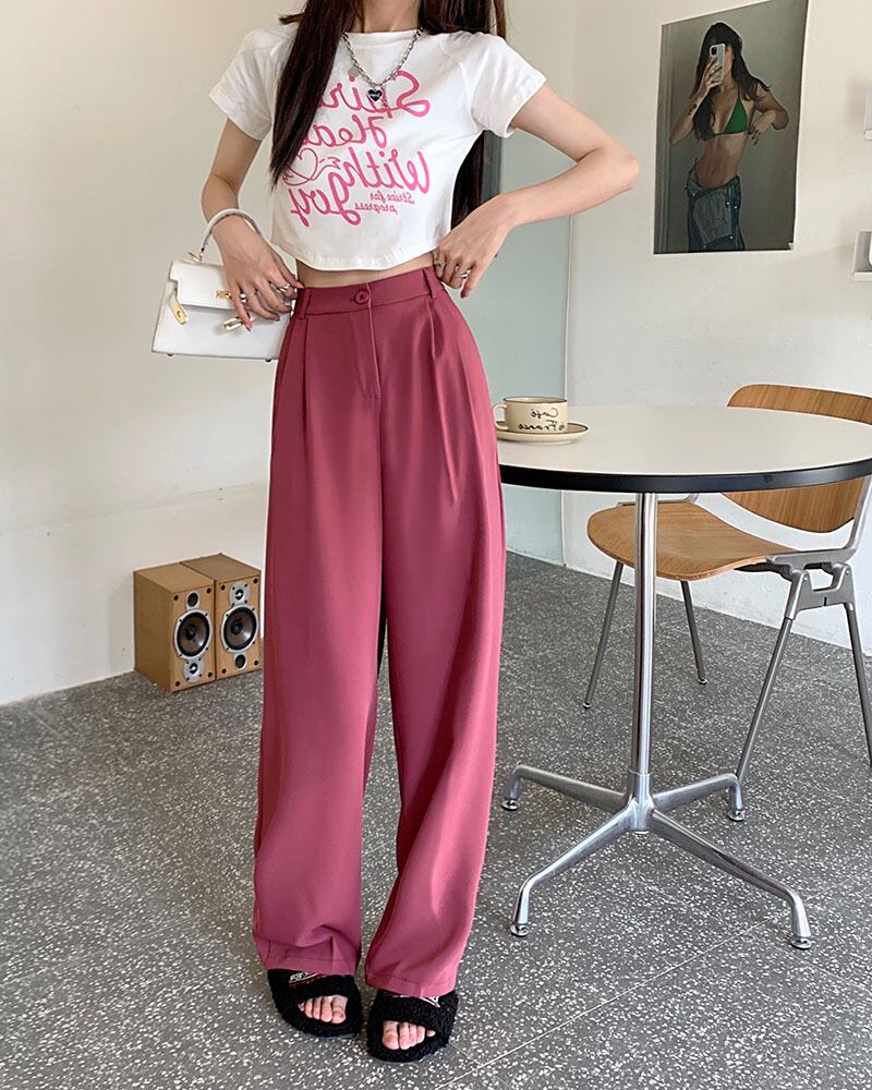 カジュアルパンツ スプリング秋物ハイウェストウェストワイドレッグルーズNEW ピンク 春物 オータム ワイドパンツ ウエスト コーデ モノクロ Studio83124603793 | pLegLad Studios