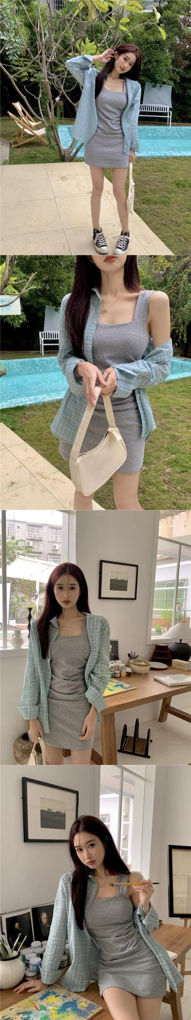 色:ピンクのシャツ,ピンクのサスペンダードレス,グレーのドレス,緑のシャツ
