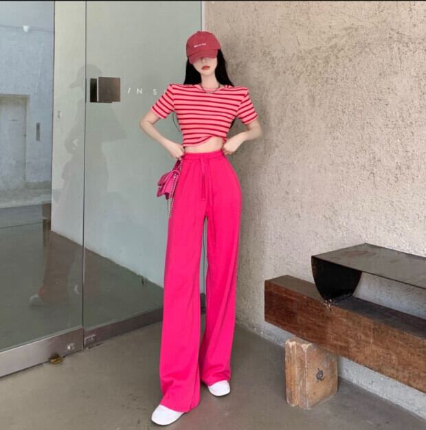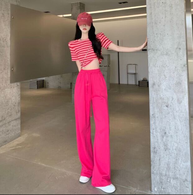 レッドカジュアルパンツ 夏服韓国ファッションNEWハイウェストウェストワイドレッグ 夏物 ワイドパンツ スタイル ウエスト コーデ モノクロ Studio94998065540 | pLegLad Studios