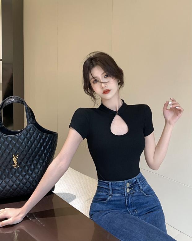 ソリッド カラースタンダードショートTシャツレディースNEW夏服ブラックトップス レトロ 夏物 ソリッドカラー コーデ モノクロ Studio29944419379 | pLegLad Studios