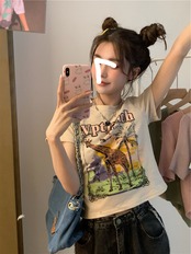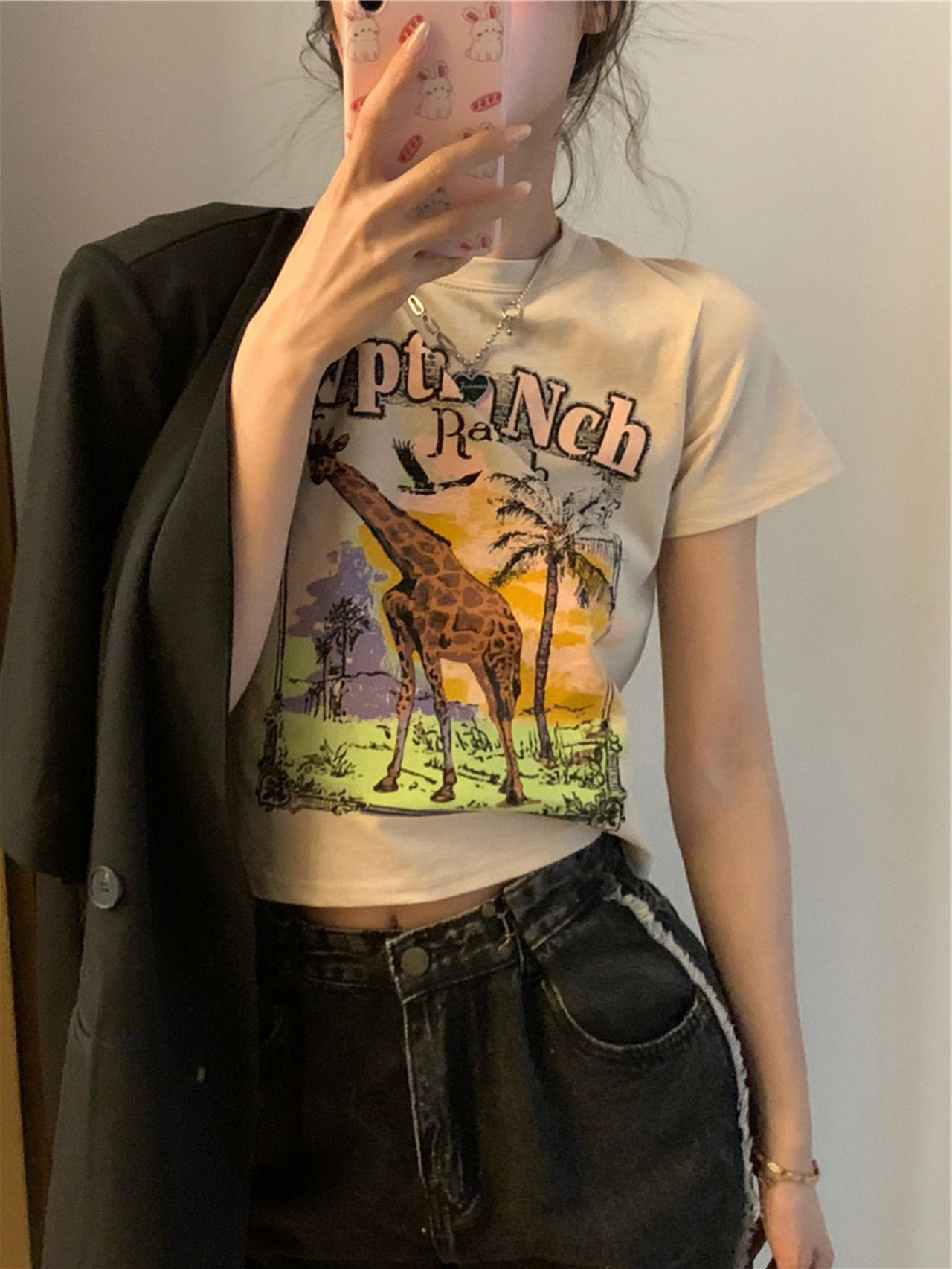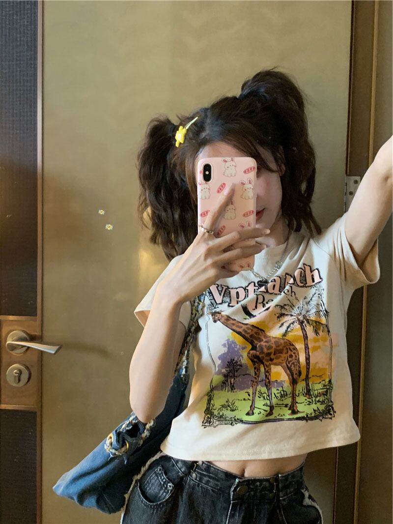 ショートTシャツ夏服韓国ファッションNEWスタンダードハイウェストウェストトップス レトロ 夏物 スタイル ウエスト コーデ モノクロ Studio58575705715 | pLegLad Studios