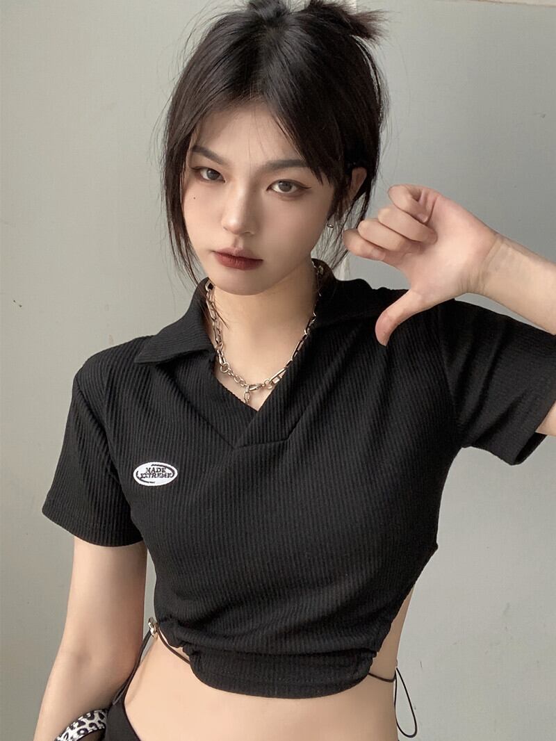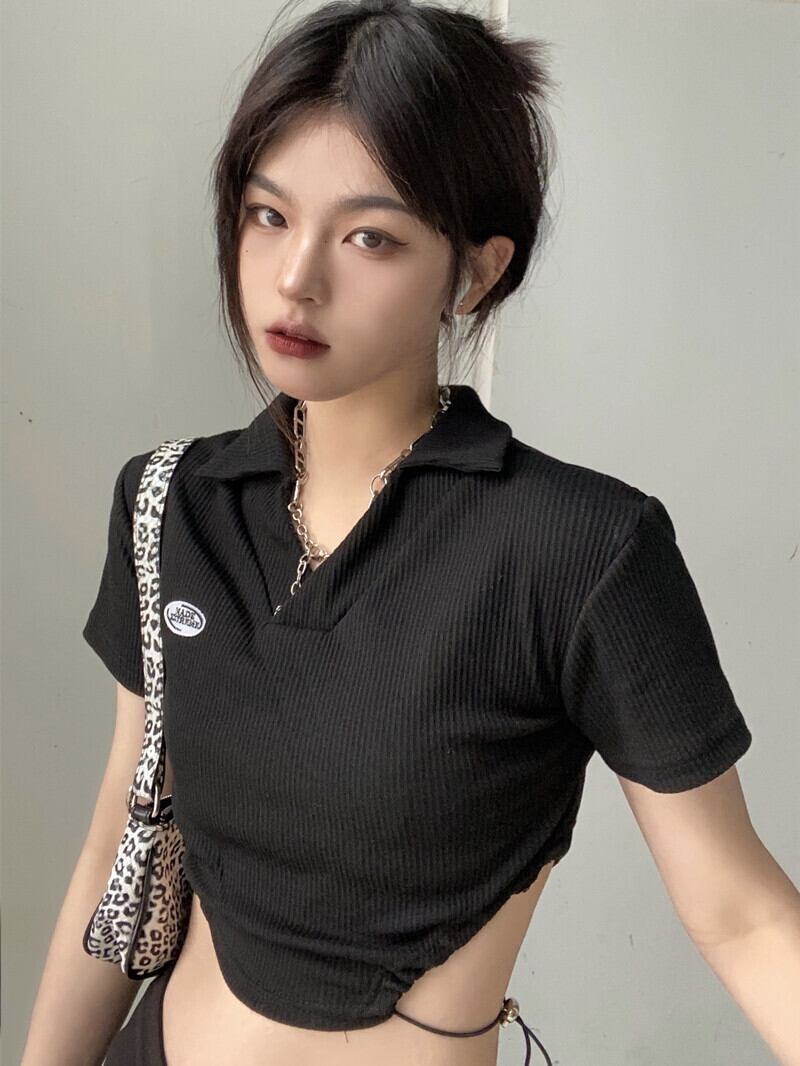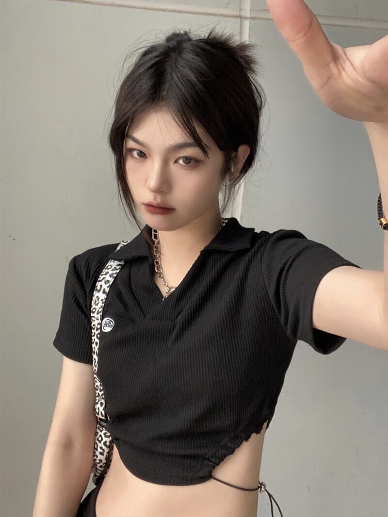 夏服韓国ファッションNEWスタンダードウェストストラップ スリムフィットショートTシャツ レッド レトロ 夏物 スタイル ウエスト Studios68334238734 | pLegLad Studios