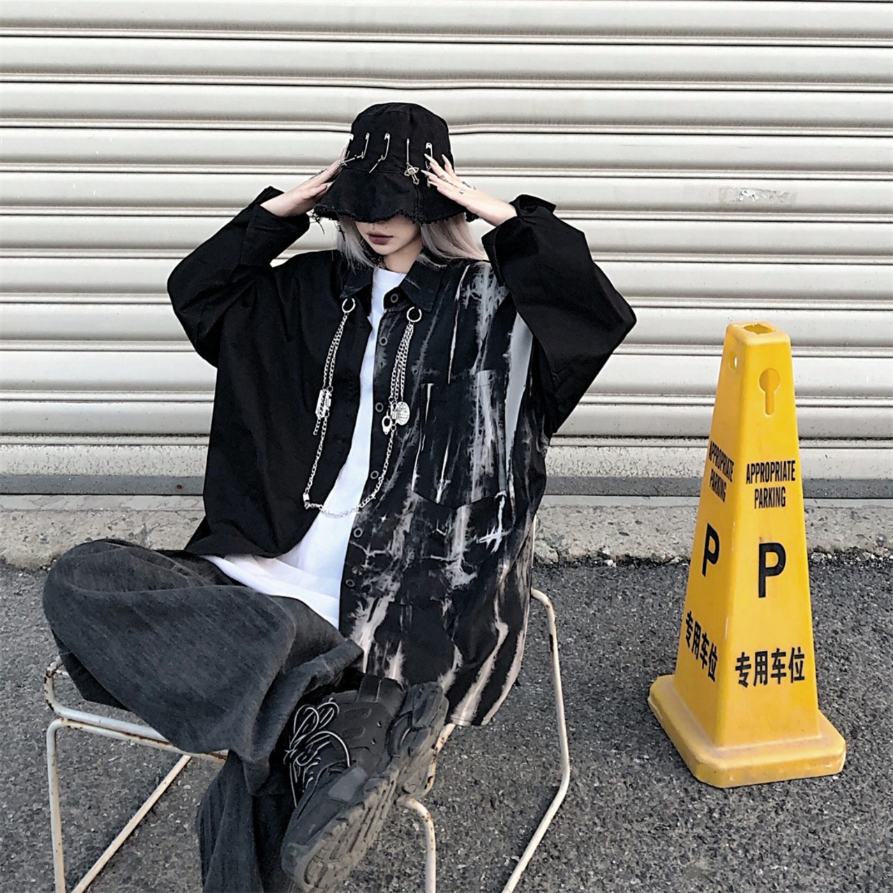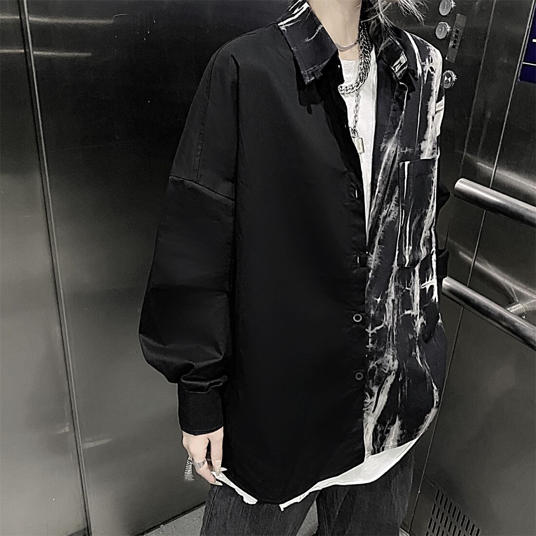 色:チェーン付き絞り染めシャツ