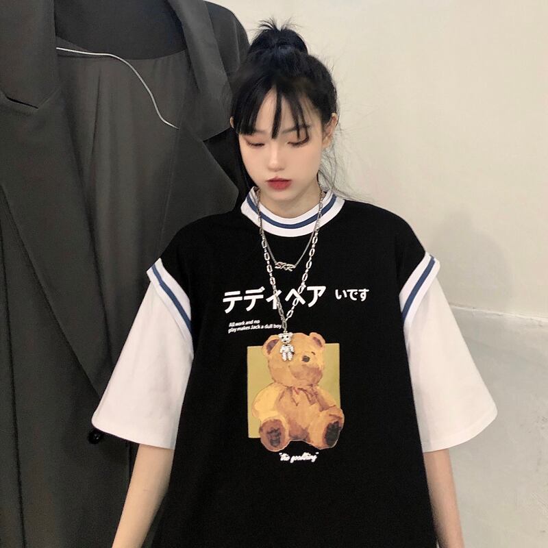 夏服韓国ファッションNEWスタイルスタンダードプリント柄ツーピースカジュアルルーズTシャツレディース レトロ ストリート 原宿 夏物 ステッチ Studios47973134006 | pLegLad Studios