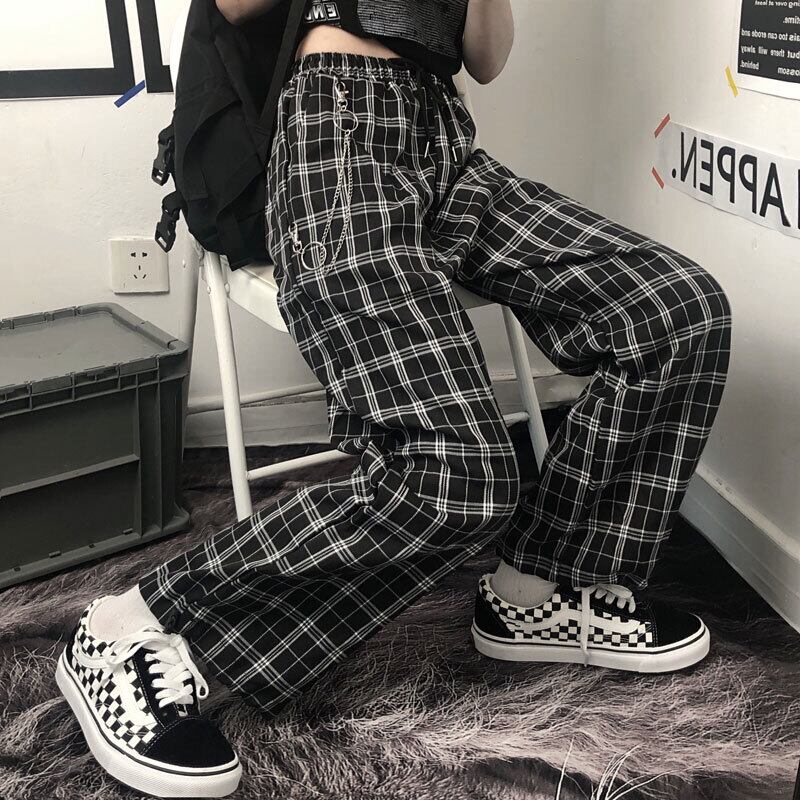NEWスタイルスタンダードルーズ薄手ストレッチウェスト格子柄カジュアルパンツ レギンス レディース レトロ ストリート エラスティック 伸縮 原宿 ウエスト Studios44569174232 | pLegLad Studios