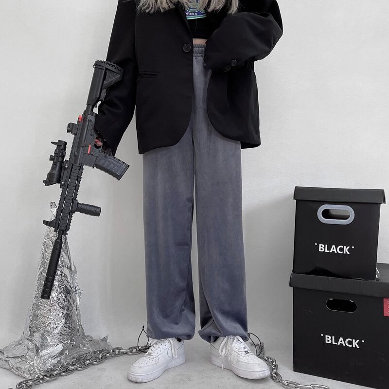 厚みカジュアルパンツ レディース韓国ファッションNEWスタイルスタンダードベーシックストレッチウェストルーズ薄手 レトロ エラスティック 伸縮 ウエスト Studios2906606538 | pLegLad Studios