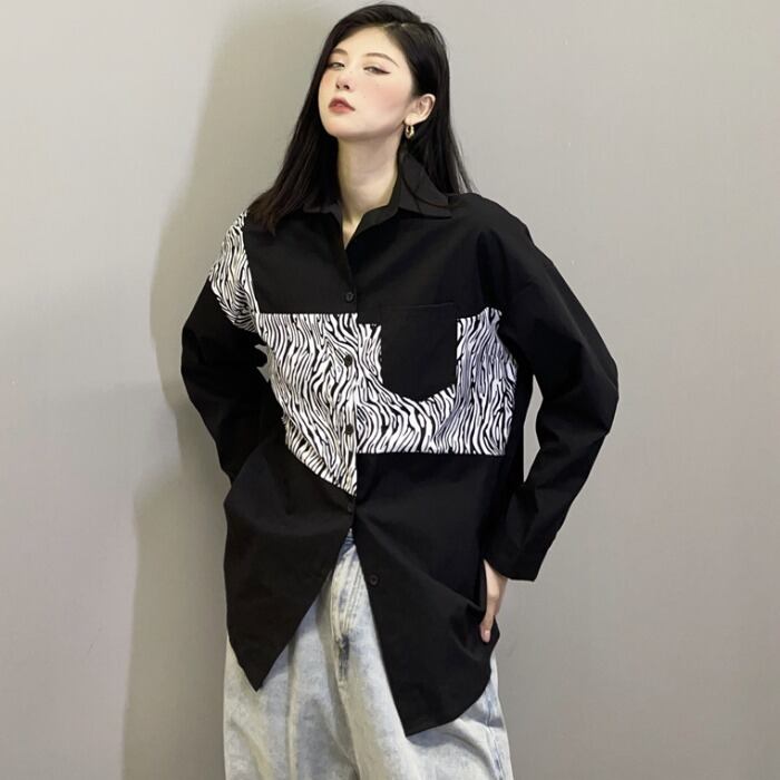 秋物韓国ファッションNEWスタイルスタンダードパターンルーズカジュアルシャツ トップス レディース ロング レトロ 原宿 オータム ステッチ 長袖 Studios12690183120 | pLegLad Studios