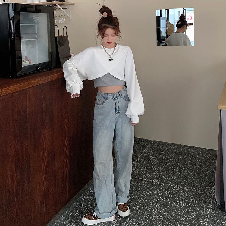 韓国ファッションルーズラウンドネックセーター スプリング秋物ショートトップス ロング 春物 オータム Oネック スタイル 長袖 Studios88497526098 | pLegLad Studios