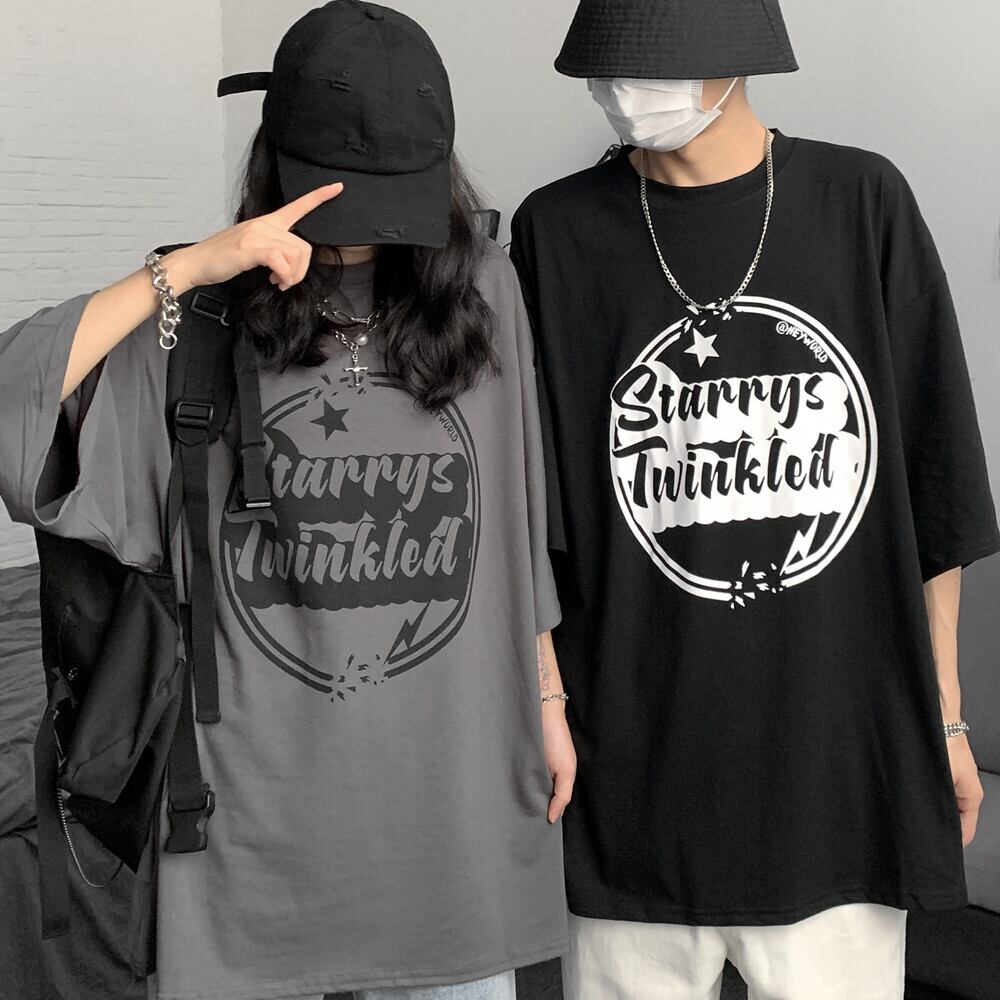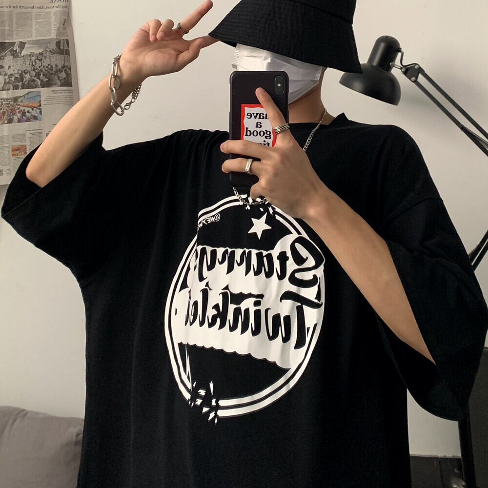 夏服韓国ファッションNEWスタンダードプリントカジュアルルーズラウンドネックTシャツメンズレディース レトロ ストリート 夏物 Oネック スタイル Studios45892648022 | pLegLad Studios