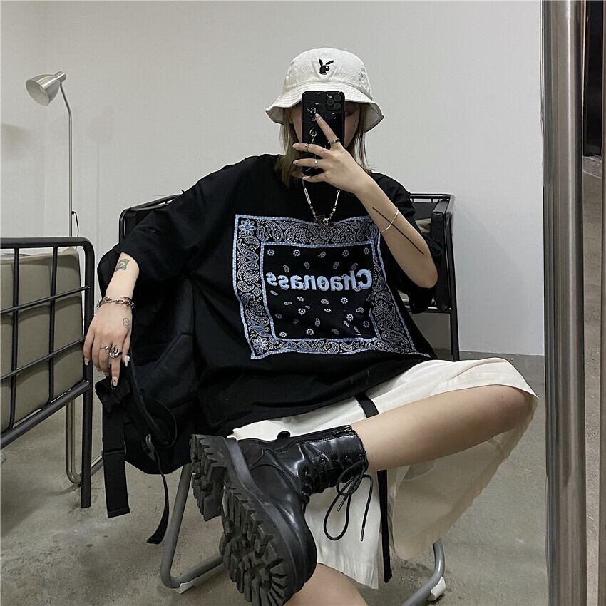 夏服韓国ファッションNEWスタイルスタンダードダークFlowerデザイン プリントルーズラウンドネックTシャツメンズレディース レトロ 原宿 夏物 Oネック フラワーデザイン Studios24950930246 | pLegLad Studios