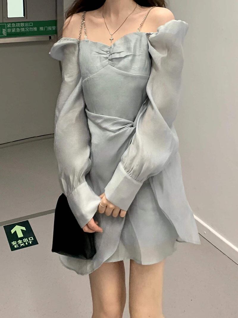夏服韓国ファッションNEWスタイルスタンダードメタルスカート ウェストワンピースレディース ロング レトロ 夏物 長袖 ウエスト Studios80237608943 | pLegLad Studios