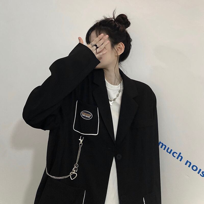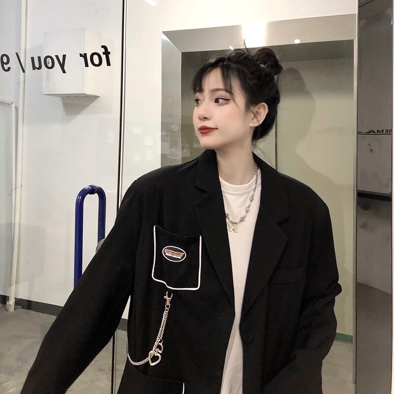 ジャケット レディース韓国ファッションNEWスタイルスタンダードチェーン ブラックルーズトップス レトロ 大人ガーリー スウィート キュート カジュアル Studios1550757247 | pLegLad Studios