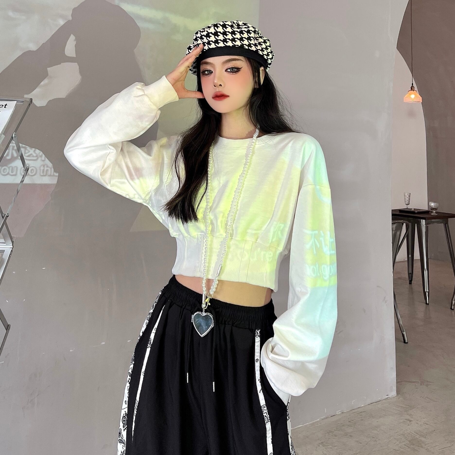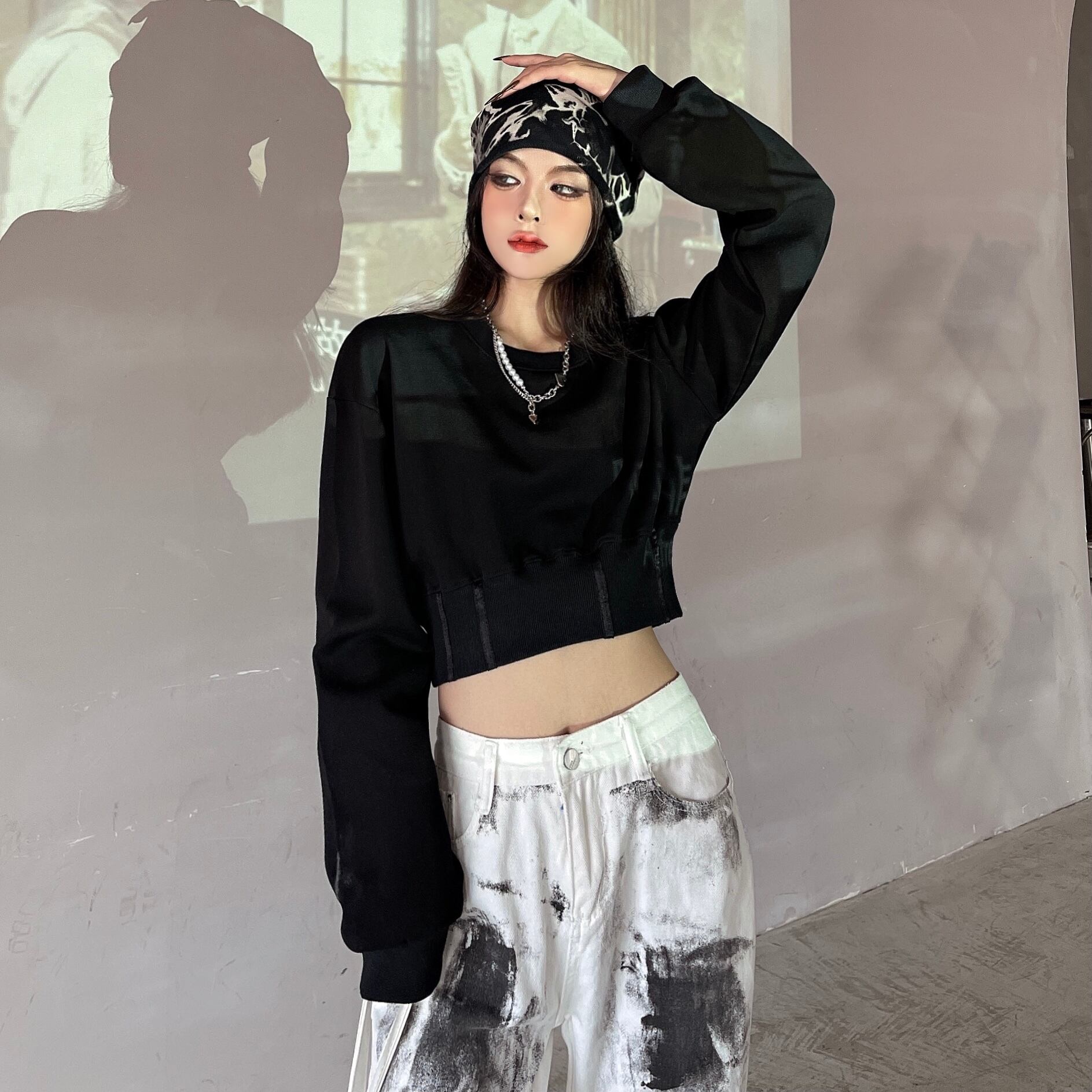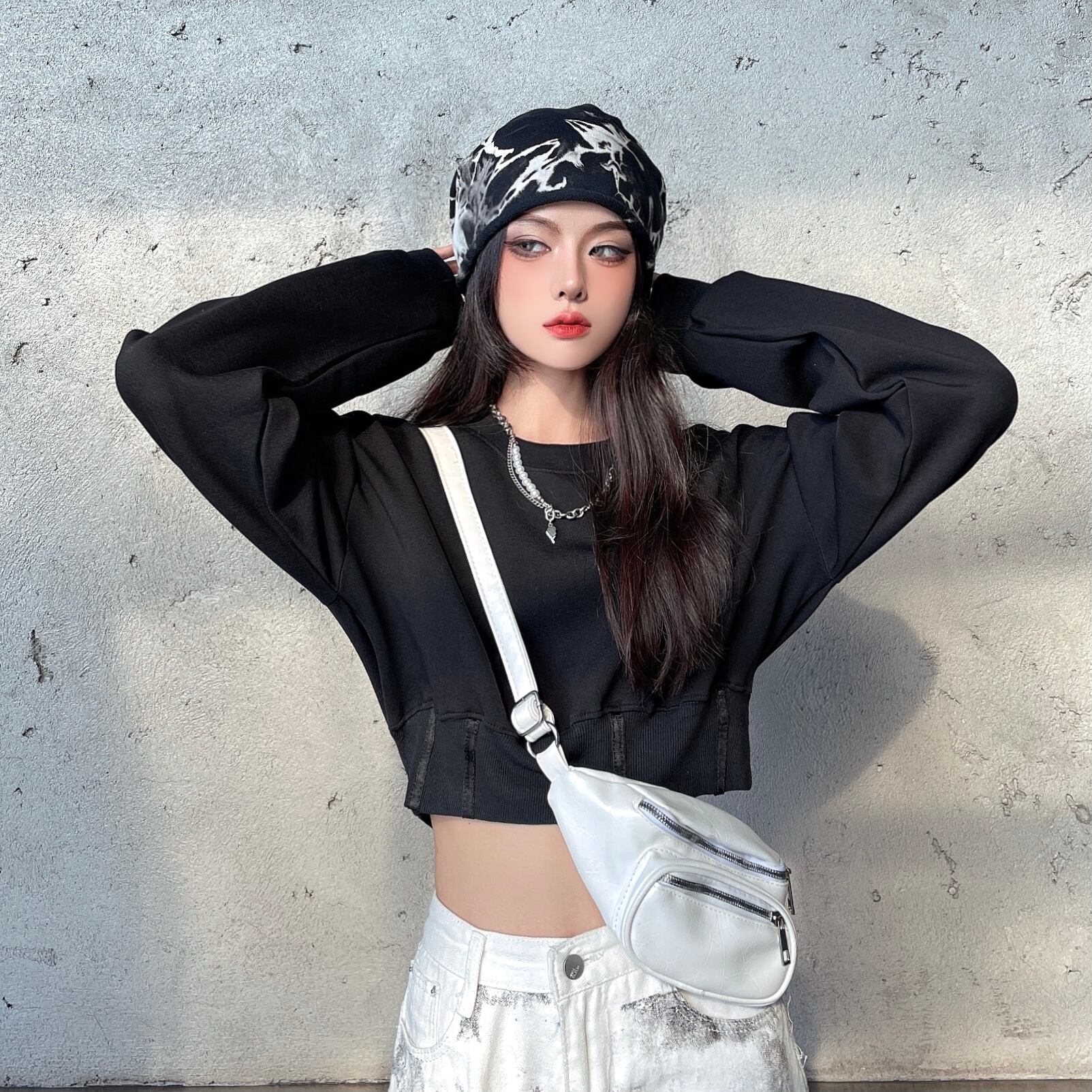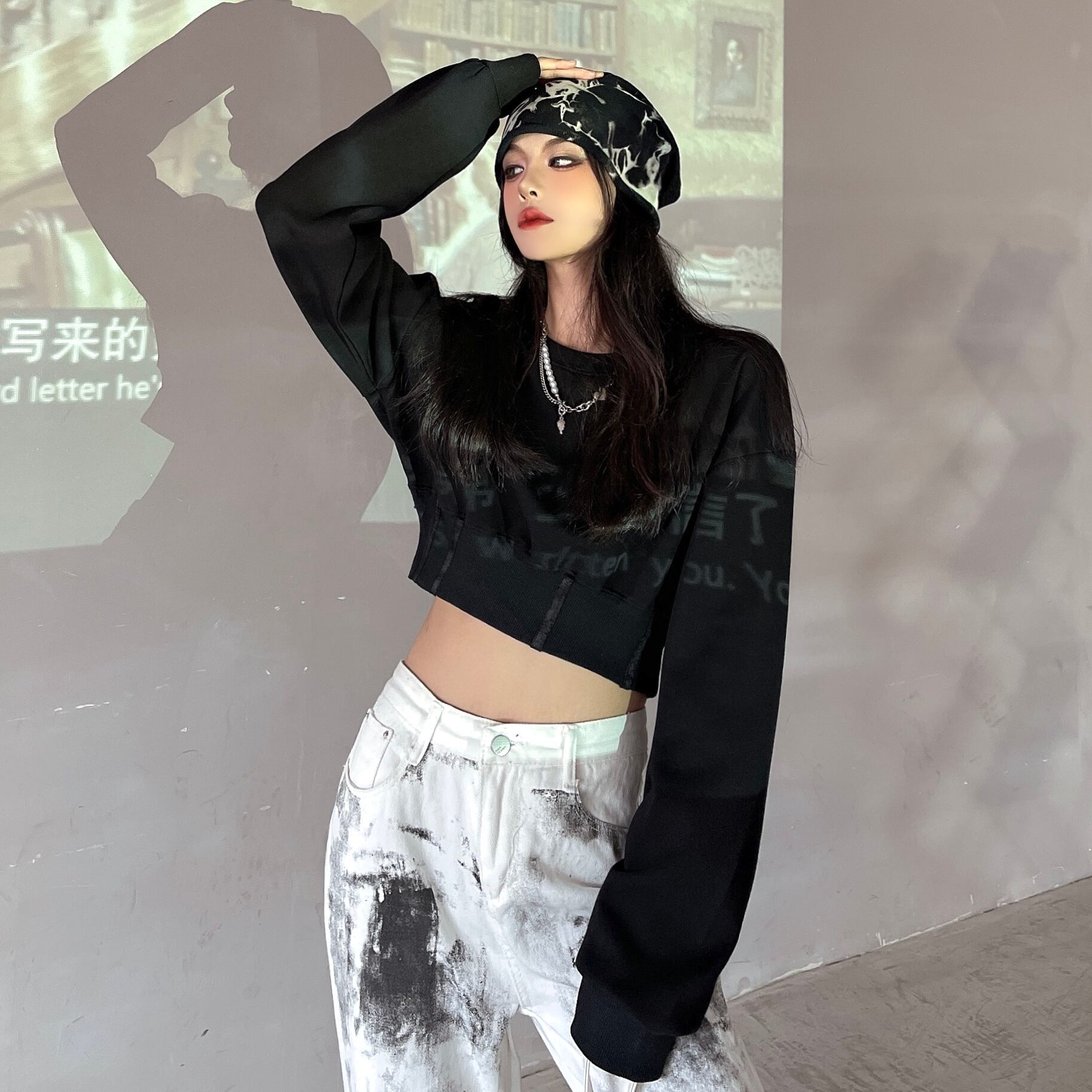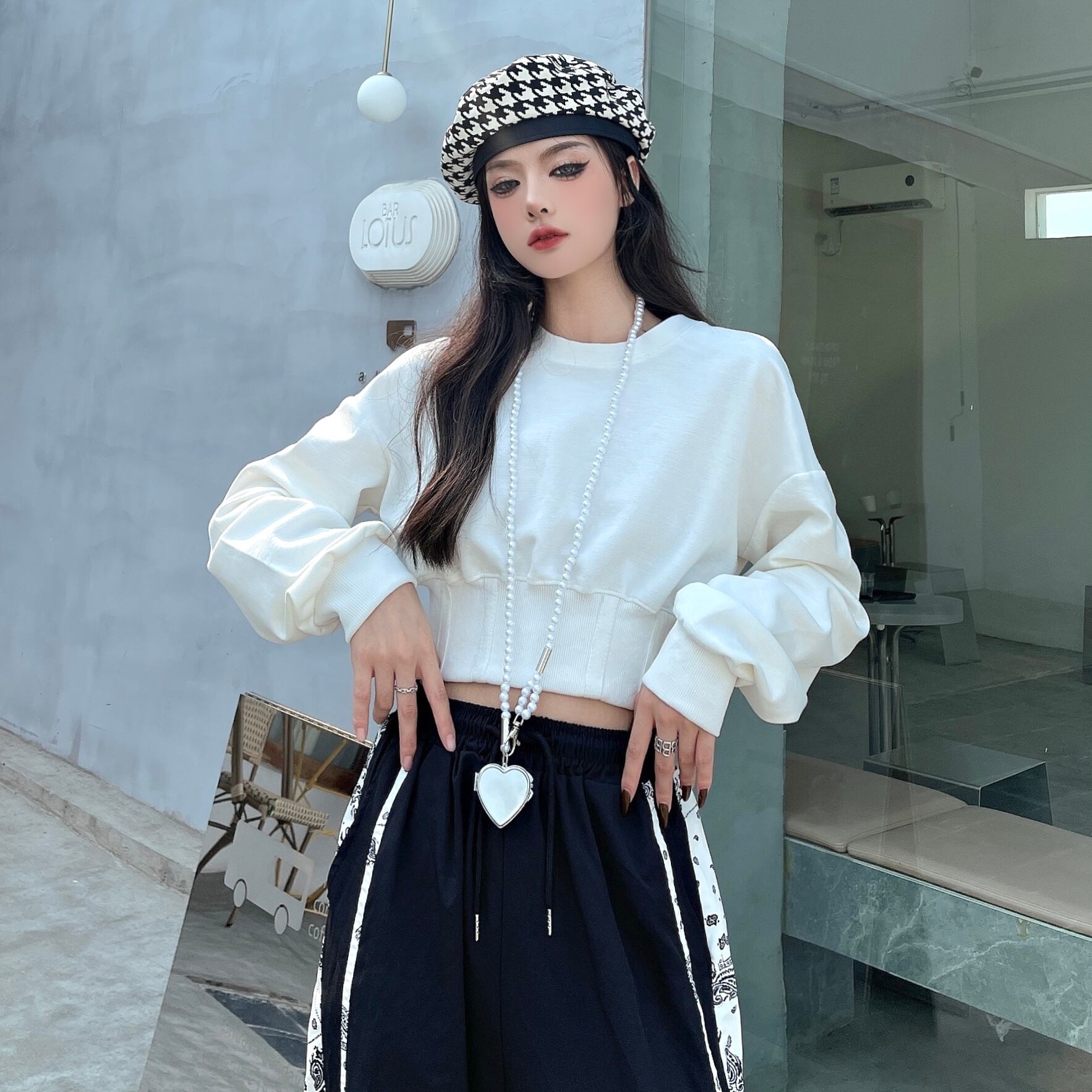 スプリング韓国ファッションNEWスタイルスタンダードルーズラウンドネックショートTシャツトップス ロング レトロ 春物 Oネック ボーイズ 長袖 Studios20184828795 | pLegLad Studios