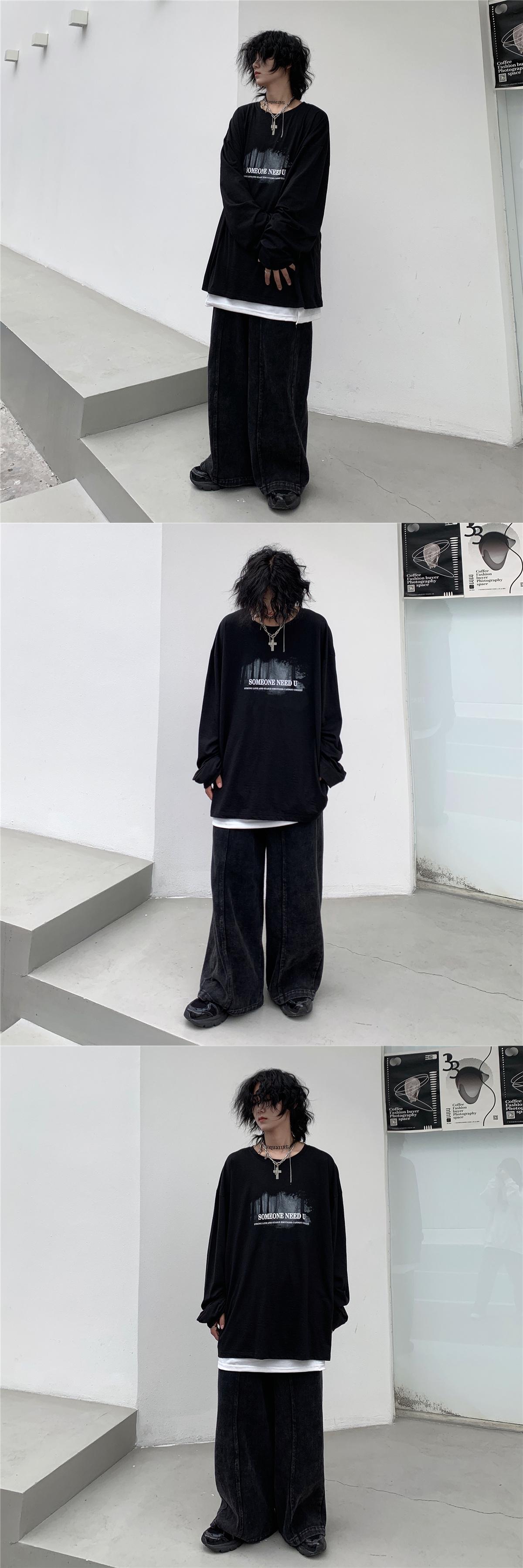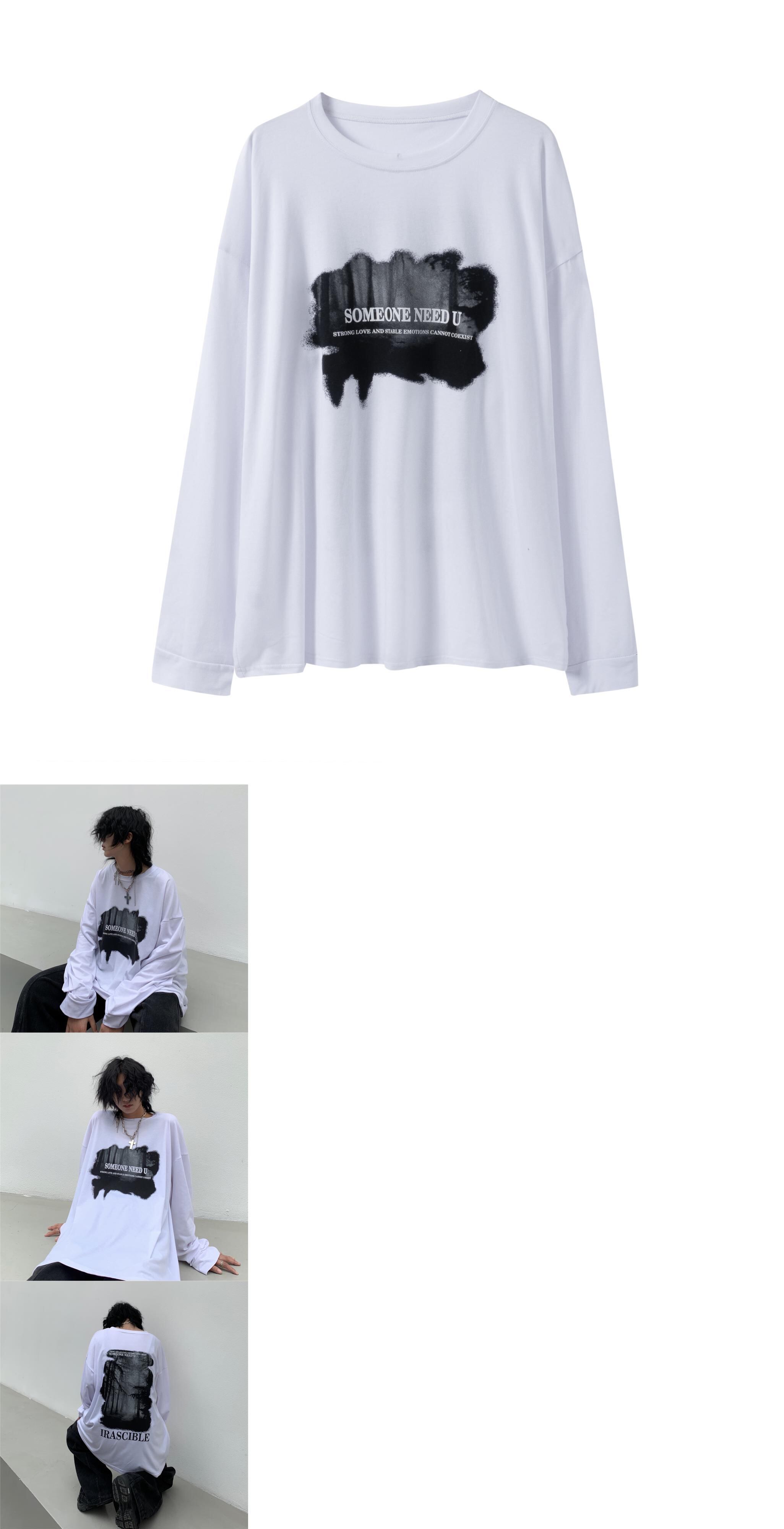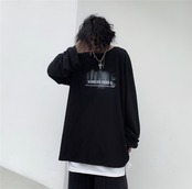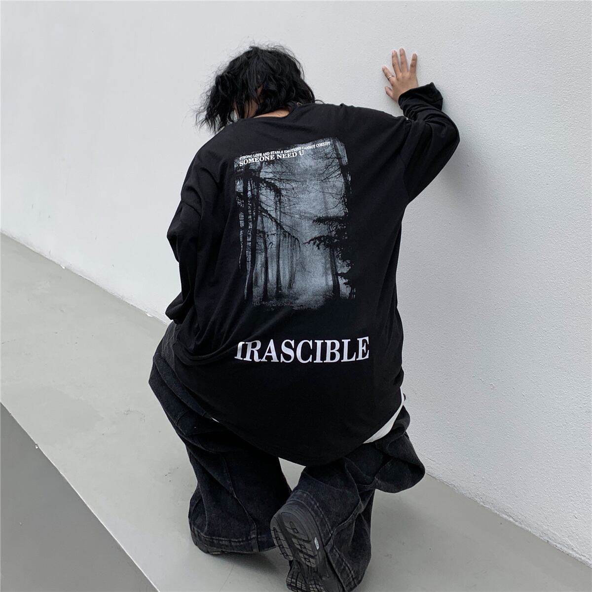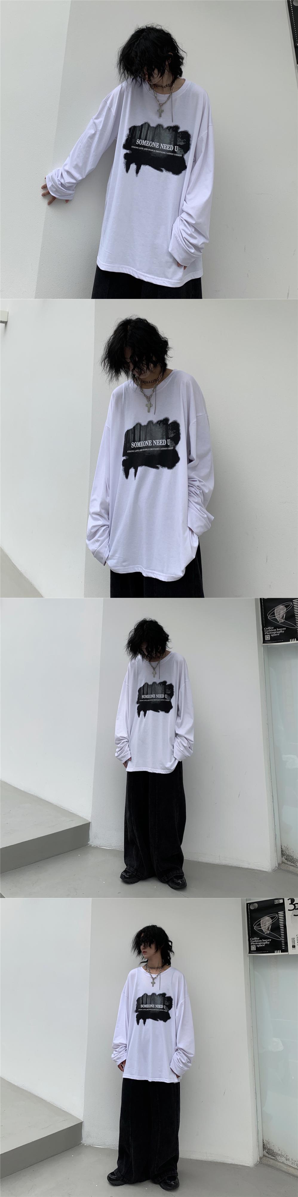 スプリング韓国ファッションNEWスタイルパターンプリントゆったりTシャツトップス メンズレディース ロング ストリート 原宿 春物 長袖 Studios81933024097 | pLegLad Studios