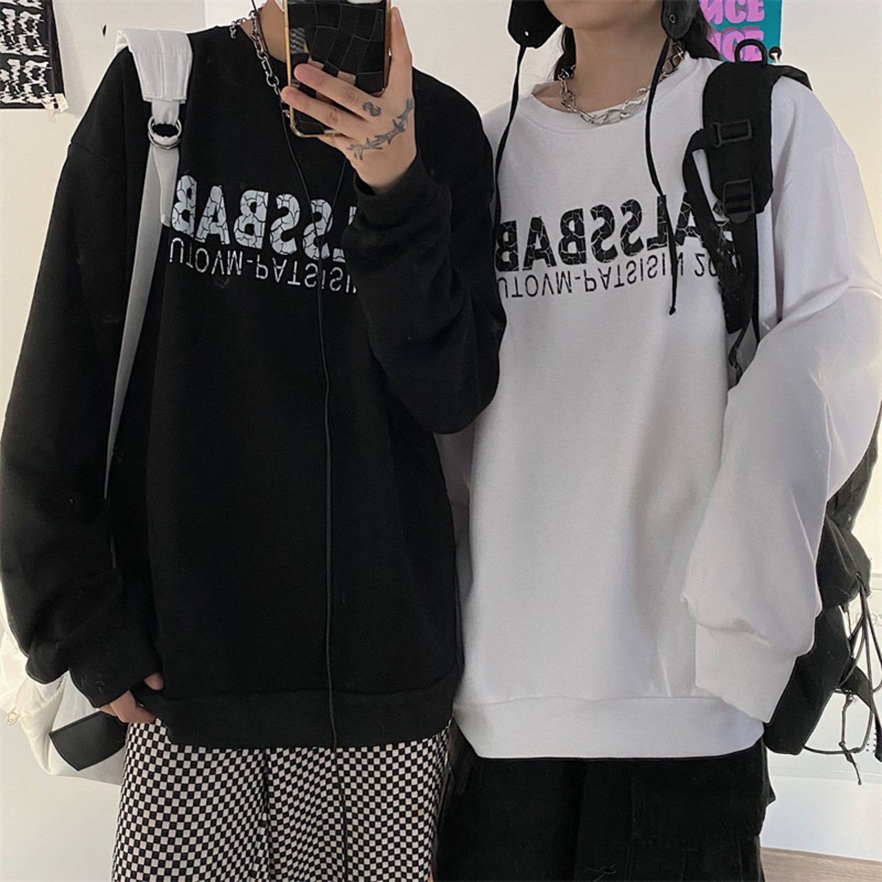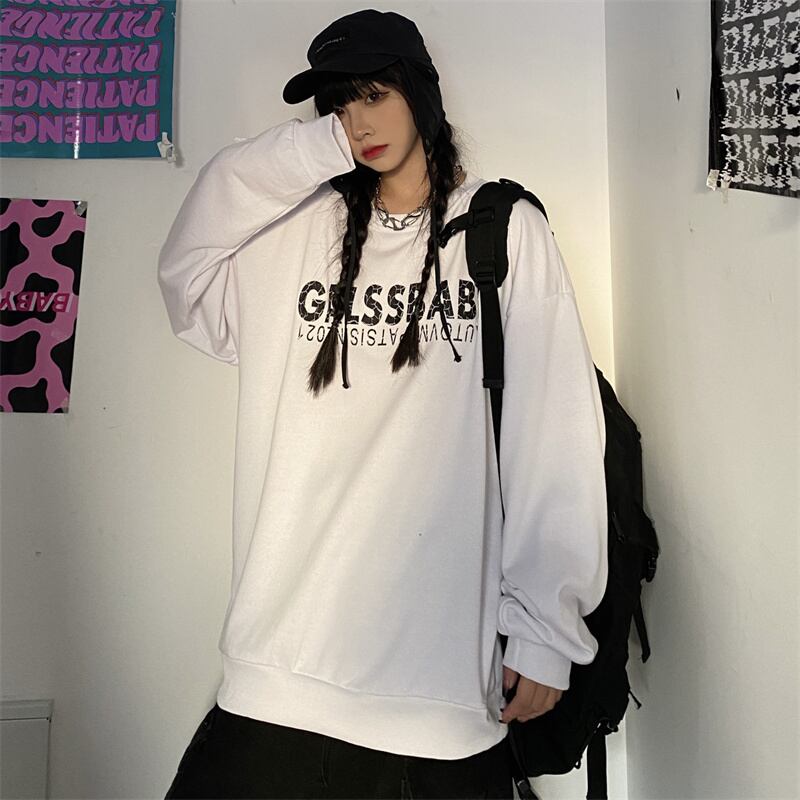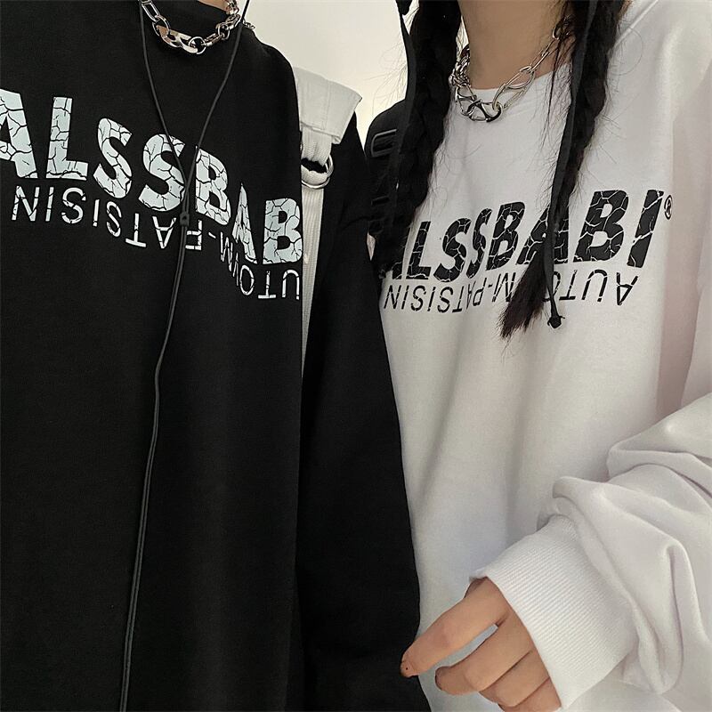 スプリング韓国ファッションNEWスタンダードプリント薄手ルーズラウンドネックセーター メンズレディース レトロ ストリート 春物 Oネック スタイル Studios43796934710 | pLegLad Studios