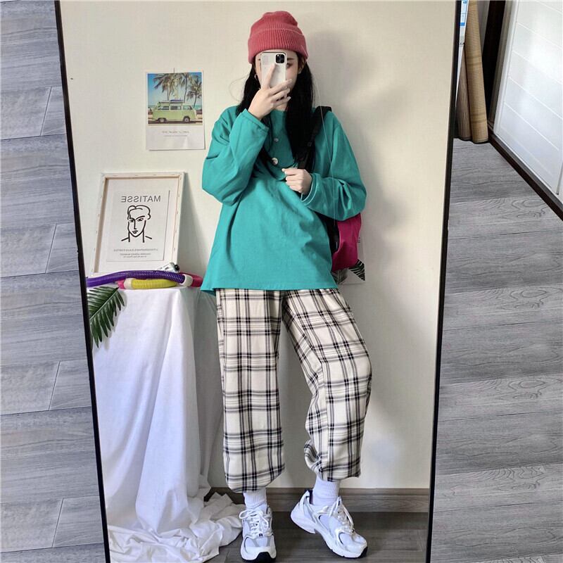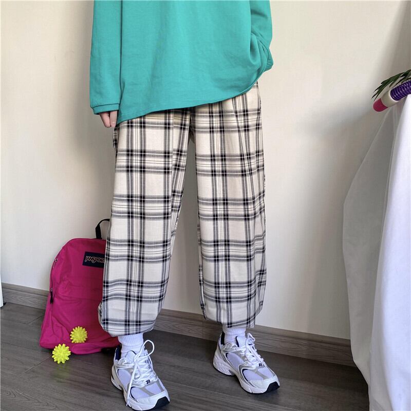 韓国ファッションNEWスタイルスタンダードルーズパンツ 薄手格子柄カジュアルハイウェストウェストワイドレッグレディース レトロ ワイドパンツ ウエスト Studios71629059485 | pLegLad Studios