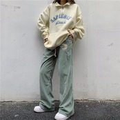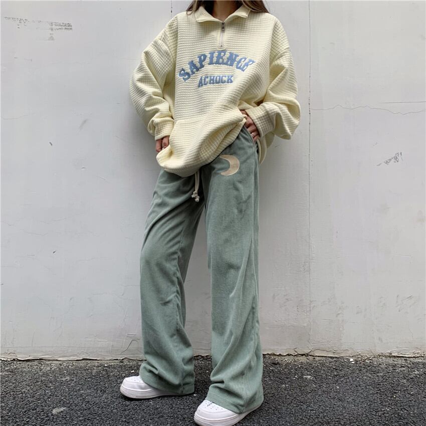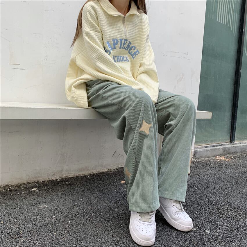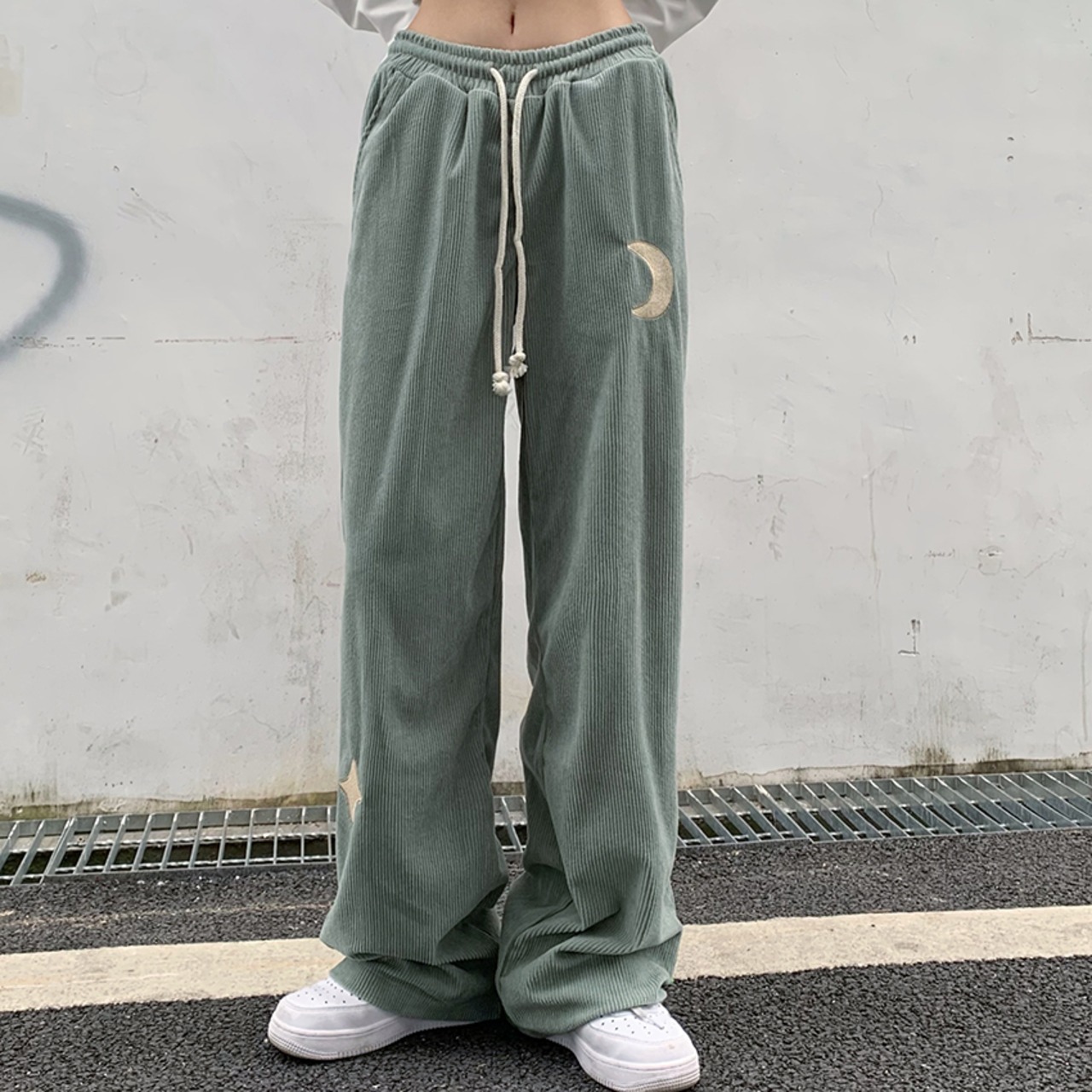 コーデュロイカジュアルパンツ 韓国ファッションNEW刺繍ハイウェストウェストルーズ薄手ワイドレッグ ワイドパンツ スタイル ウエスト Studios1496944916 | pLegLad Studios